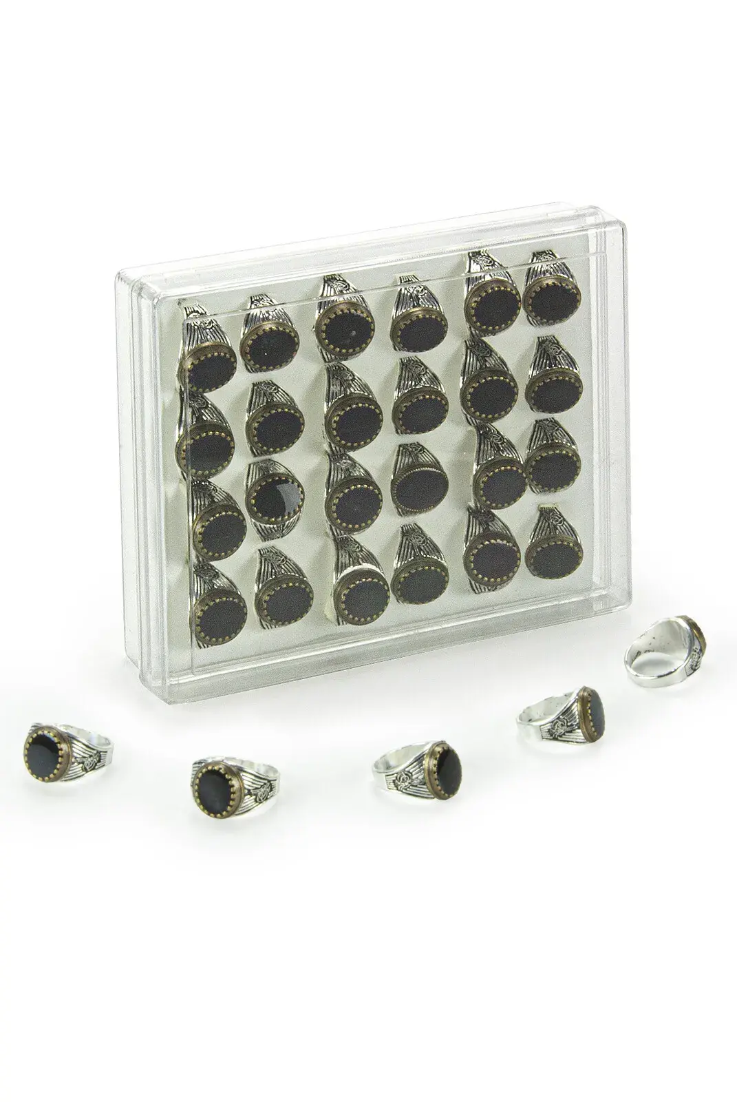 Hac Umre Hediyelik 24 Adet Tuğralı Gümüş Sarı Renk Erkek Yüzük