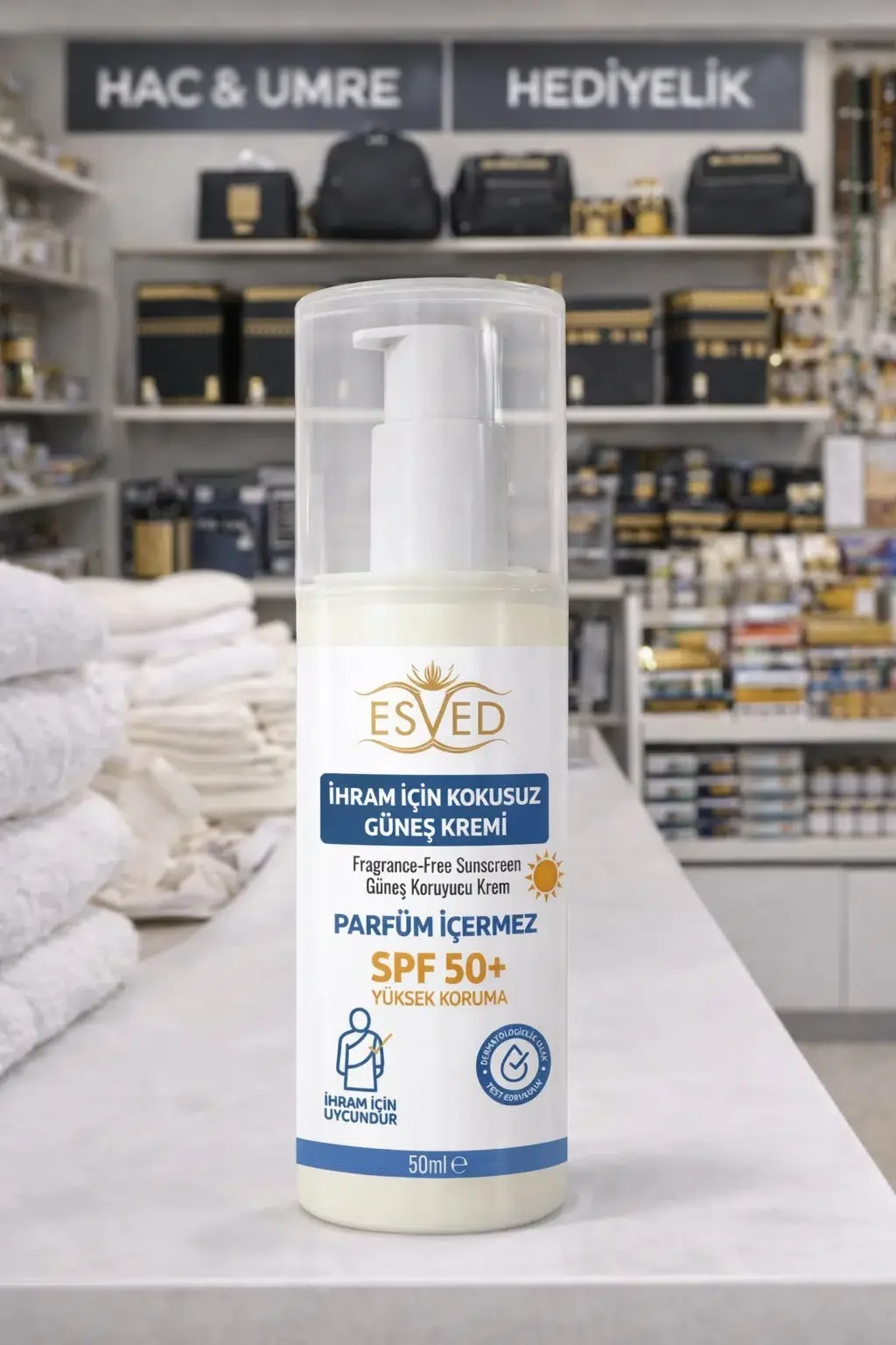 Hac ve Umre İçin Kokusuz Güneş Kremi – SPF 50+ (50 ml), Hac ve Umre ziyaretlerinde, ihram kurallarına tamamen uygun olarak kullanabileceğiniz özel bir güneş koruyucu kremdir. Parfüm içermeyen formülü sayesinde hassas ciltler için uygundur ve yüksek güneş koruması sağlar. Güneşin zararlı UVA ve UVB ışınlarına karşı etkili bir koruma sunar ve cildinizde yağlı bir his bırakmaz.