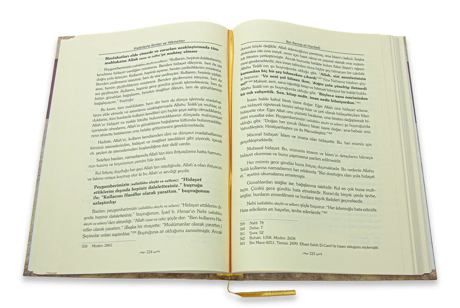 "Hadislerle ilimler ve hikmetler’ kitabı, allame Hafız İbn Receb el-Hanbeli’nin (rahimehullah) yazdığı en harika kitaplarından birisi olarak kabul edilmektedir. Bu eserinde, nebevi hadisi şerifleri açıklamasında, diğerlerinin önüne geçmiş, bir üstünlük sağlamış ve harikalıklar ortaya koymuştur. Kitabı, hastaların şifası, susamışların suyu olmuştur. Yazar kitabına, Kuranı-kerim’in tefsirinden, resullerin efendisinin sünnetinden ve selefi salihinin eserlerinden inciler eklemesinin yanında fıkhi faideler, usul kaideleri, edebi açıklamalar, dille ilgili incelikler, davranış sırları ve eğitimle ilgili açıklamalarda bulunmuştur.