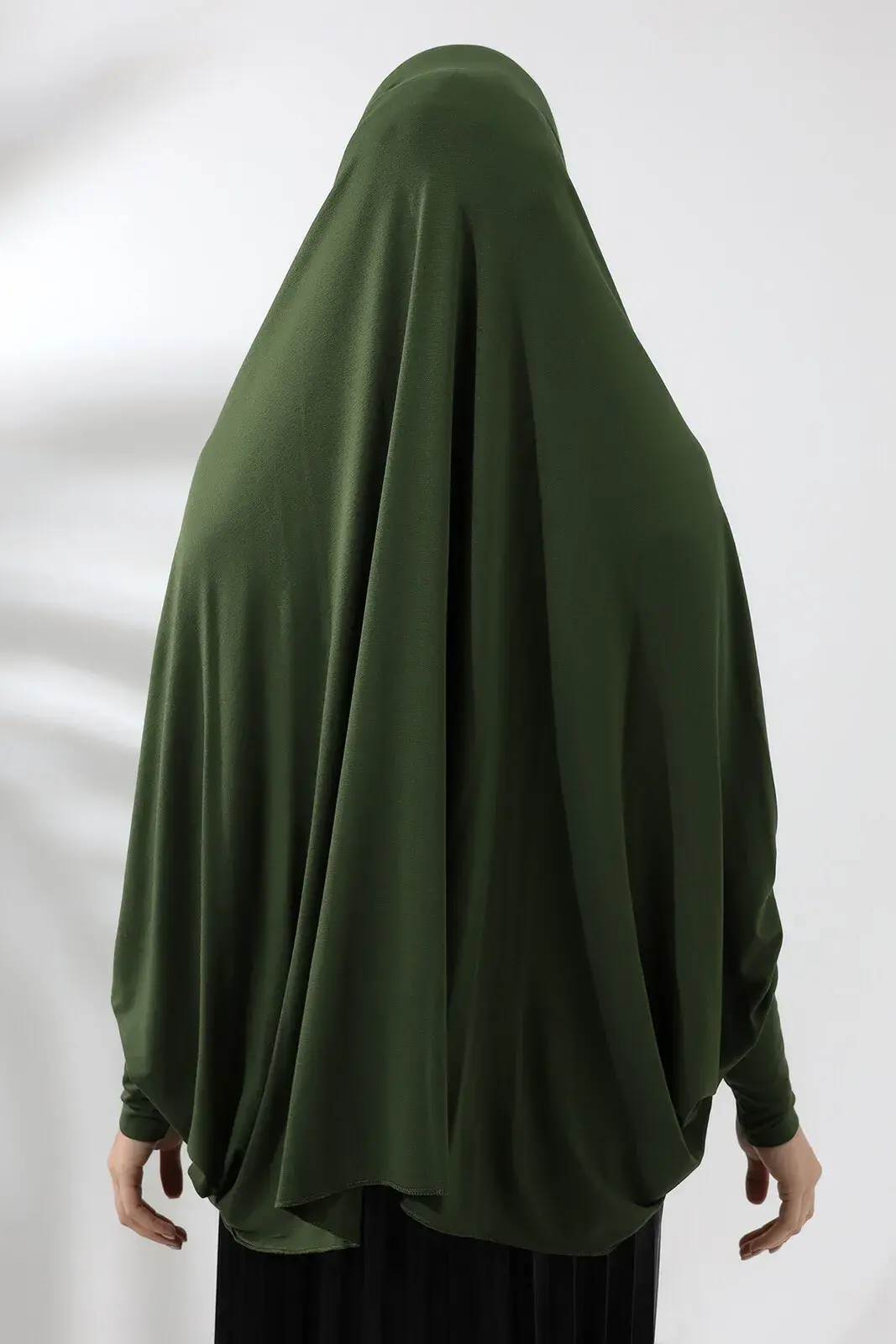 Haki Hazır Pratik Sultanbaş Tesettür Kollu Penye Sufle Eşarp Hijab