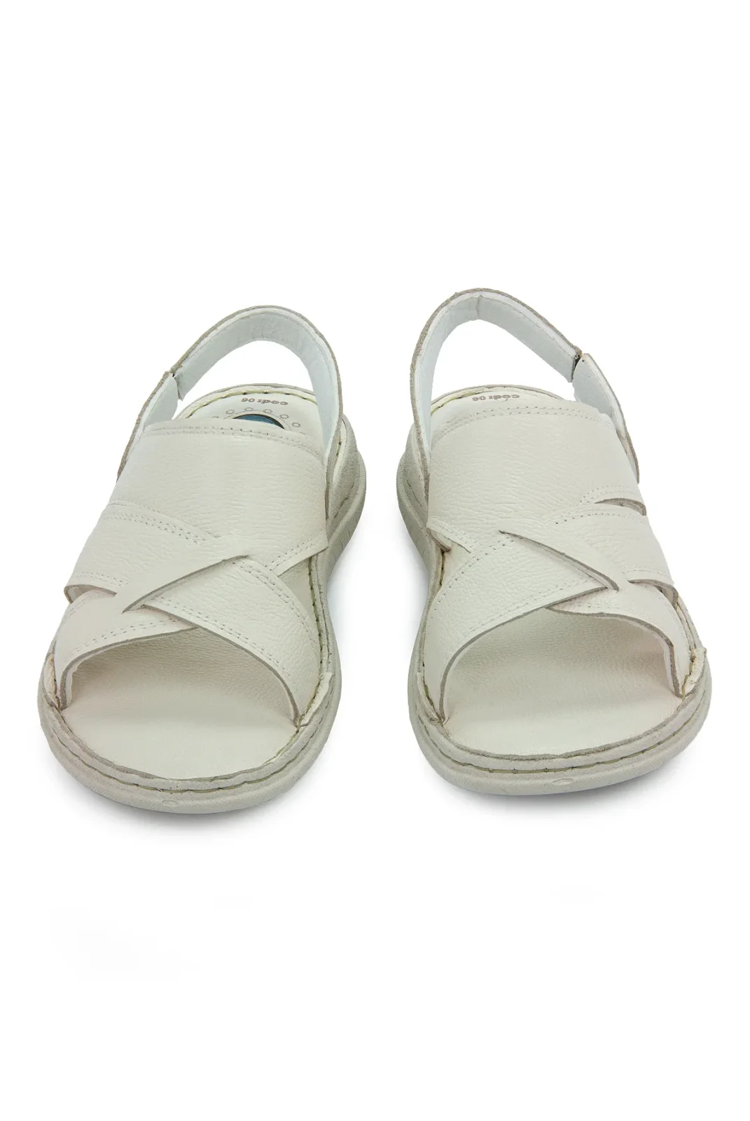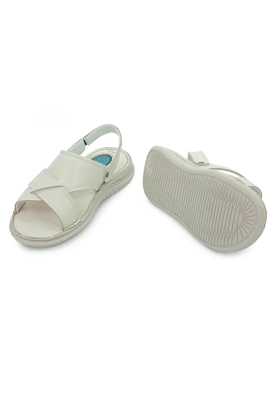 Hakiki Deri Ortopedik Topuk Jelli Erkek Sandalet Terlik - Hac Umre Günlük Rahat Taban Sandalet - Krem