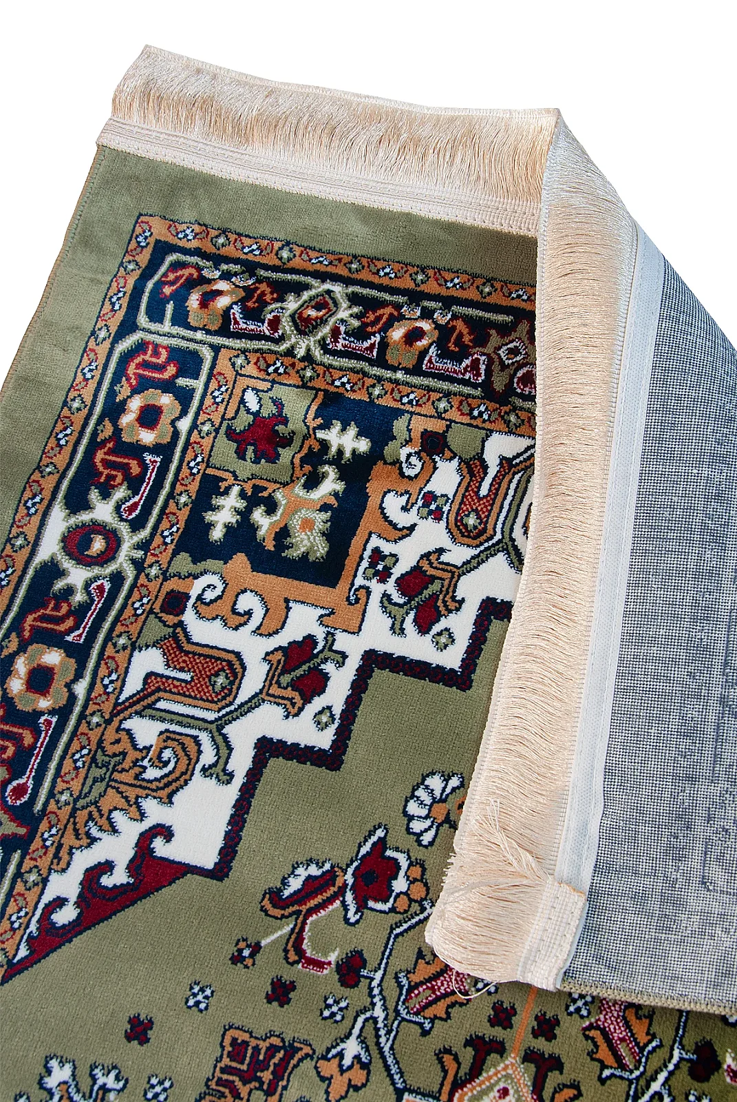 Alt yüzeyinde bulunan kaymaz yapı sayesinde zeminde sabit durur, ibadet sırasında güvenli kullanım sağlar.