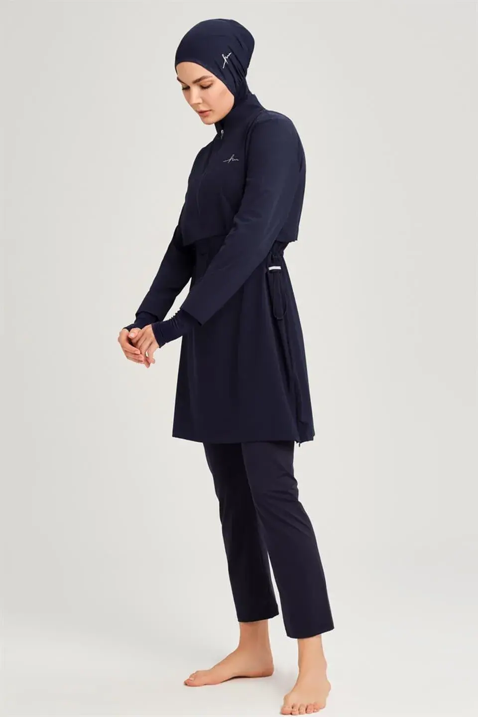 Haşema Esila Fully Covered Hijab Swimsuit HSM-2934 Navy Blue