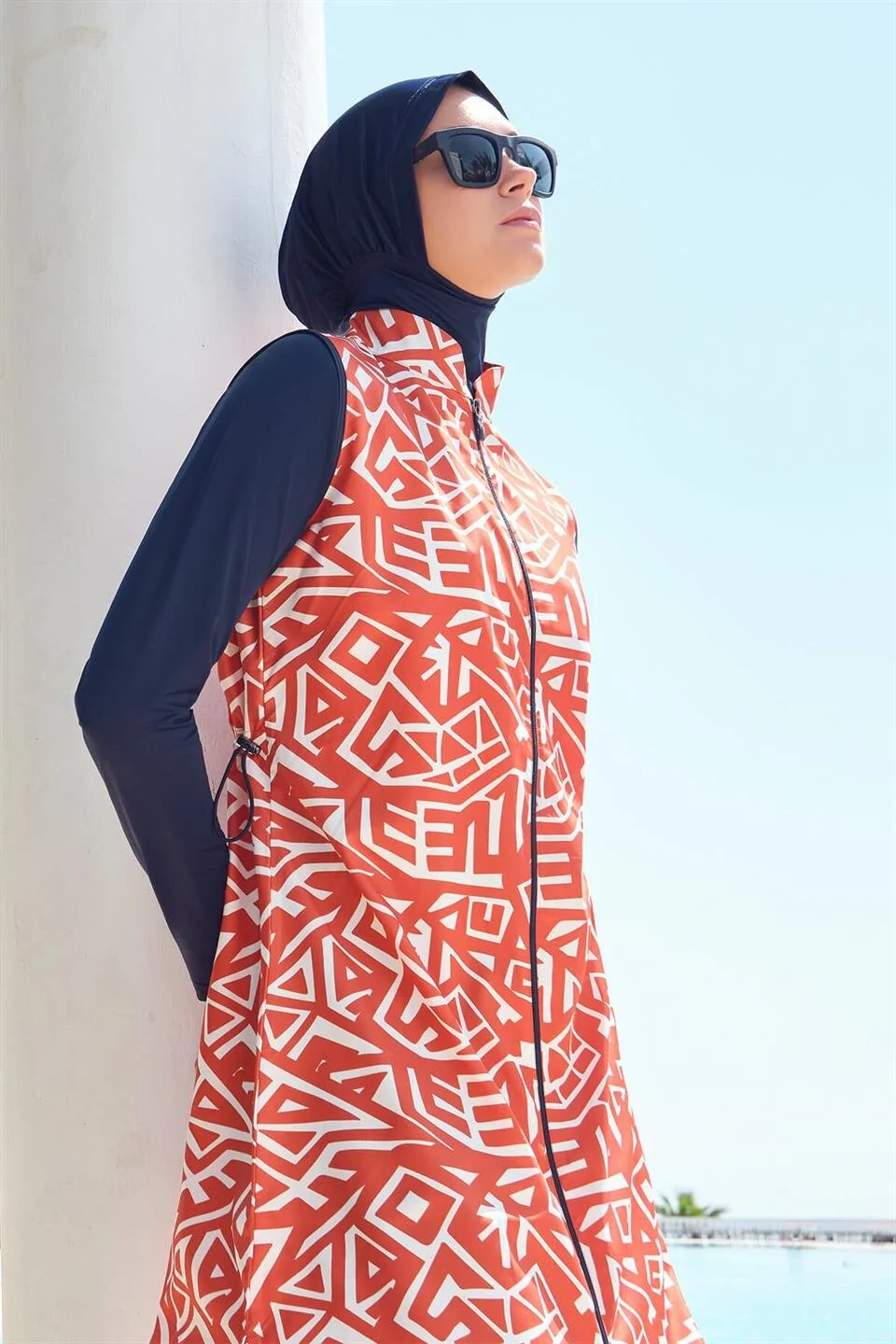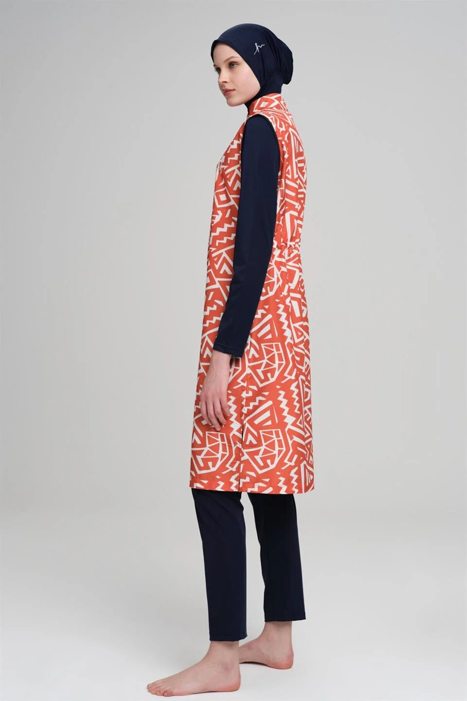 Haşema Geometrik Desenli Jileli Tam Kapalı Tesettür Mayo Takımı HSM-3004 Turuncu
