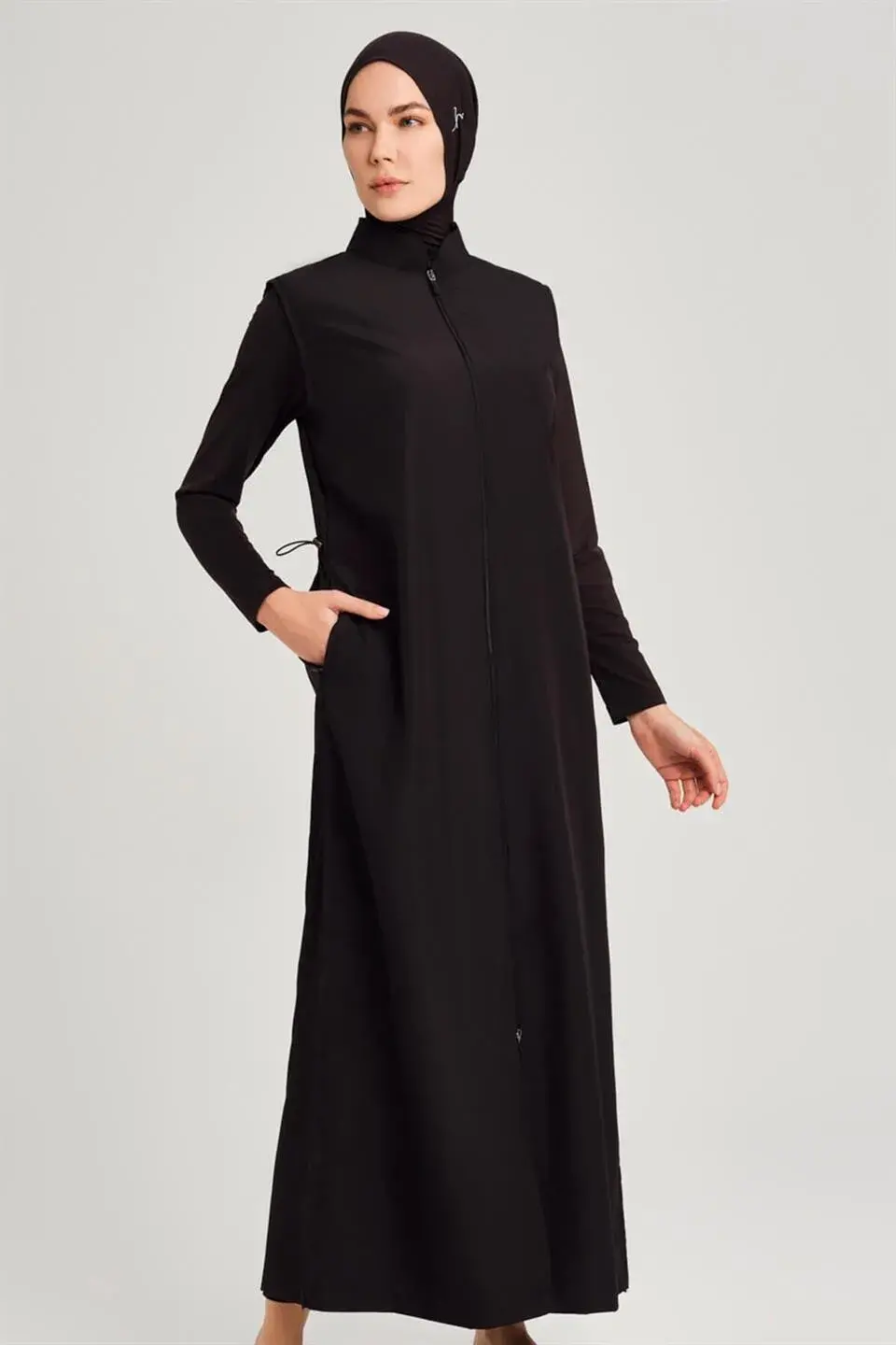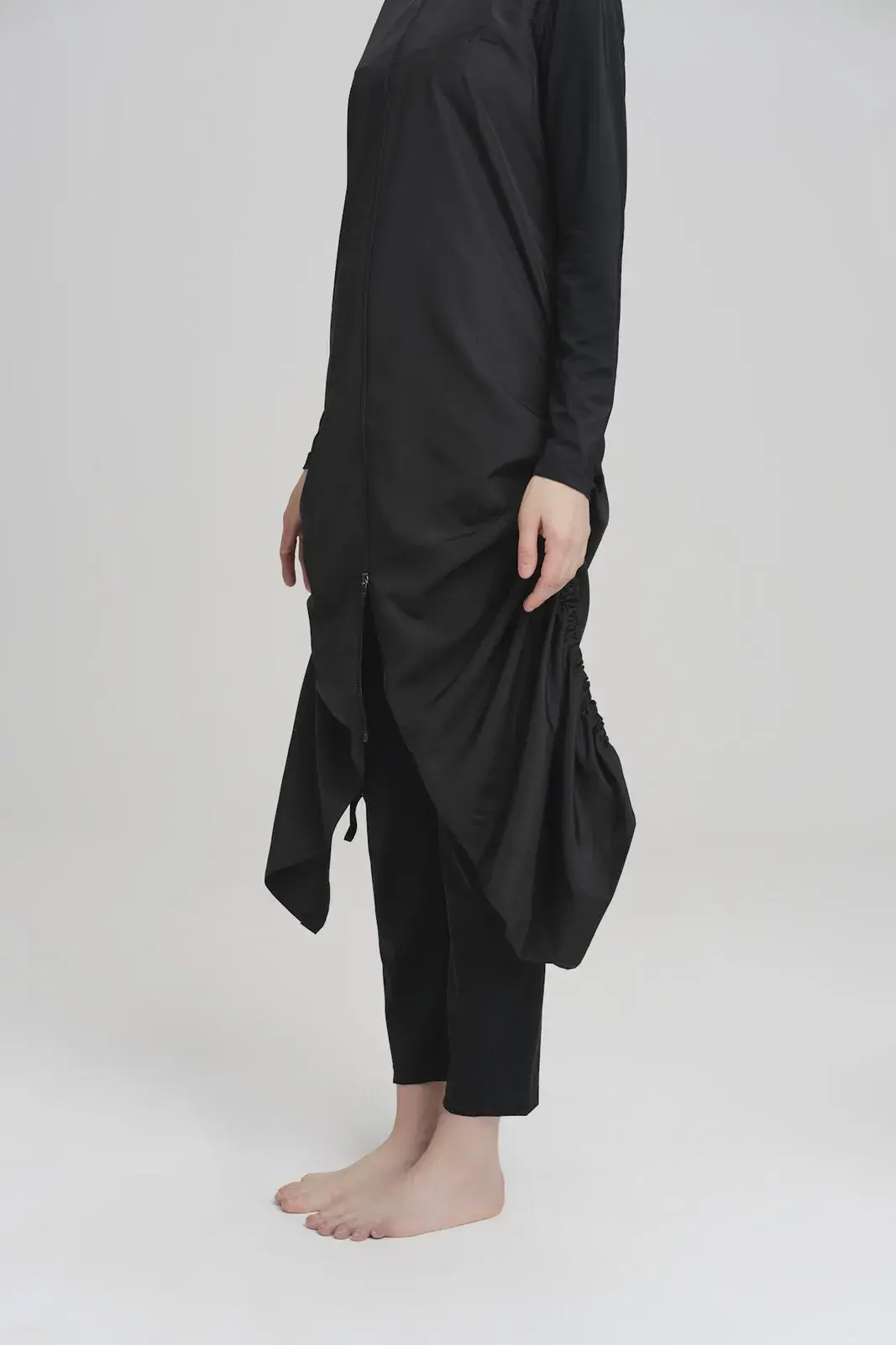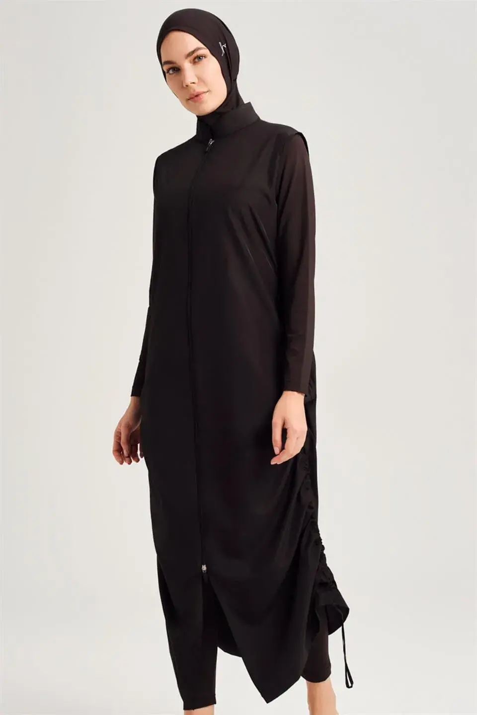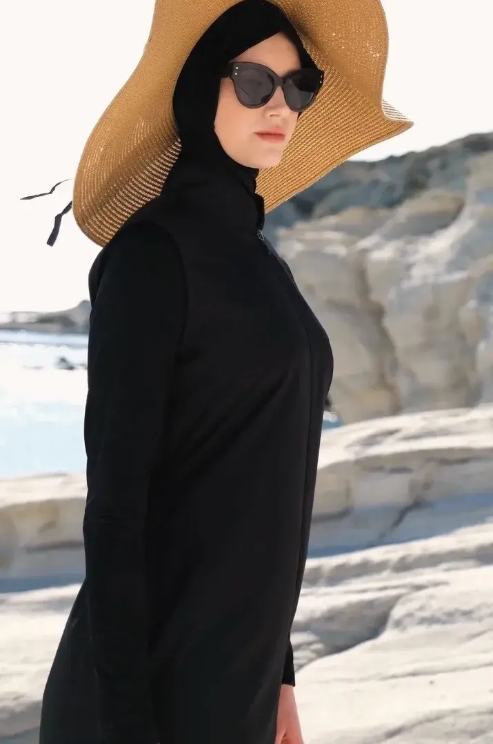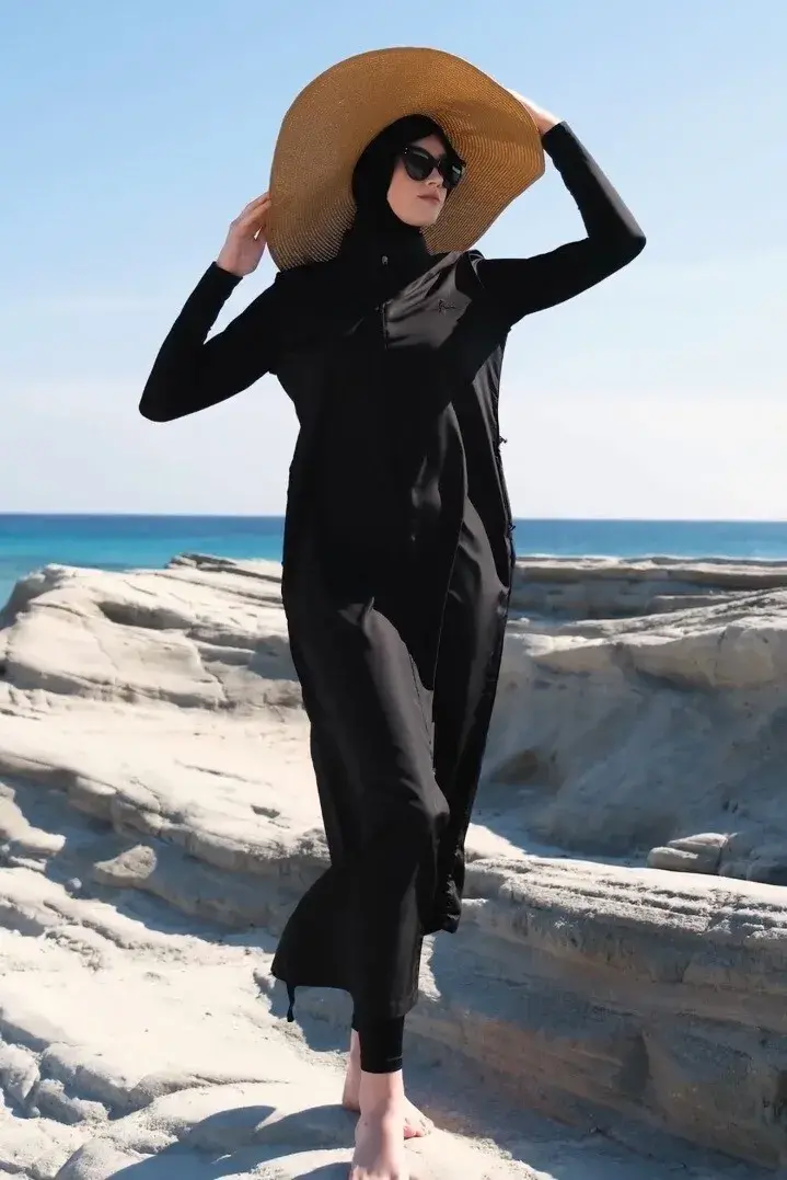 Haşema Tam Boy Siyah Jileli 4 Parça Tam Kapalı Tesettür Mayo Takımı H-6021-23
