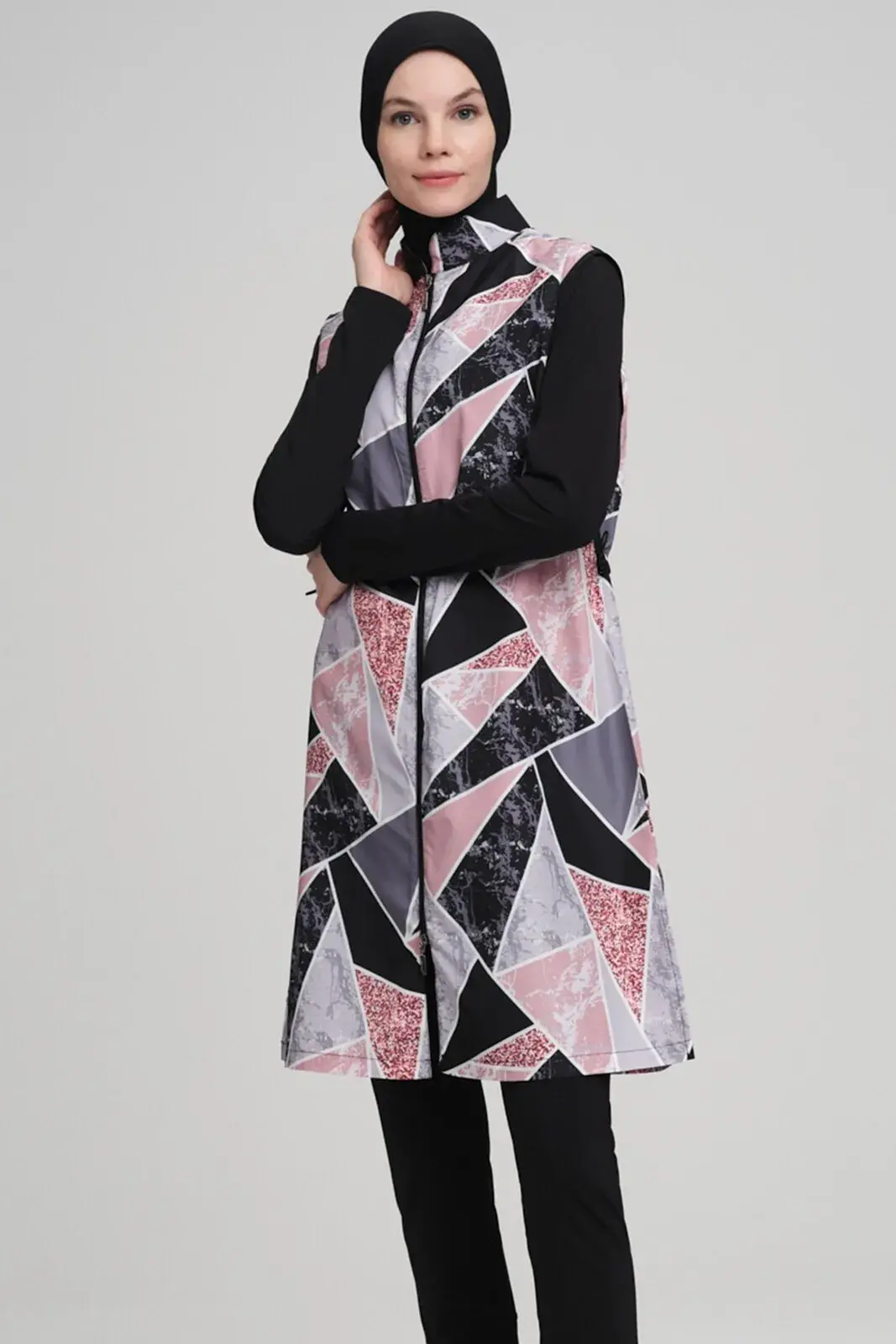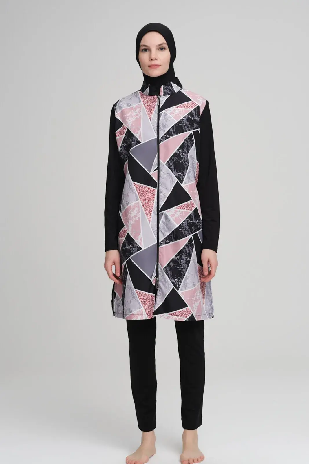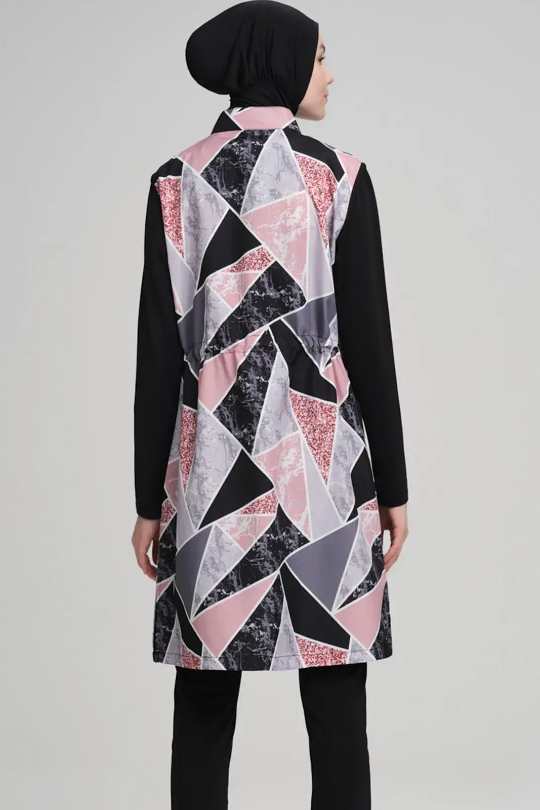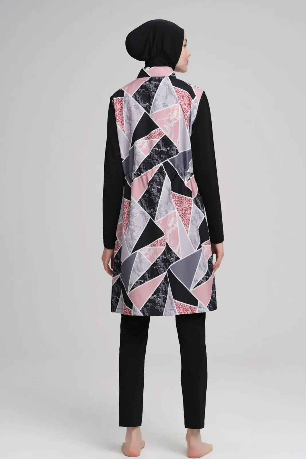Haşema Nehar NHR-22-04 Mermer Desenli Siyah Jileli Tam Kapalı Tesettür Mayo Takımı