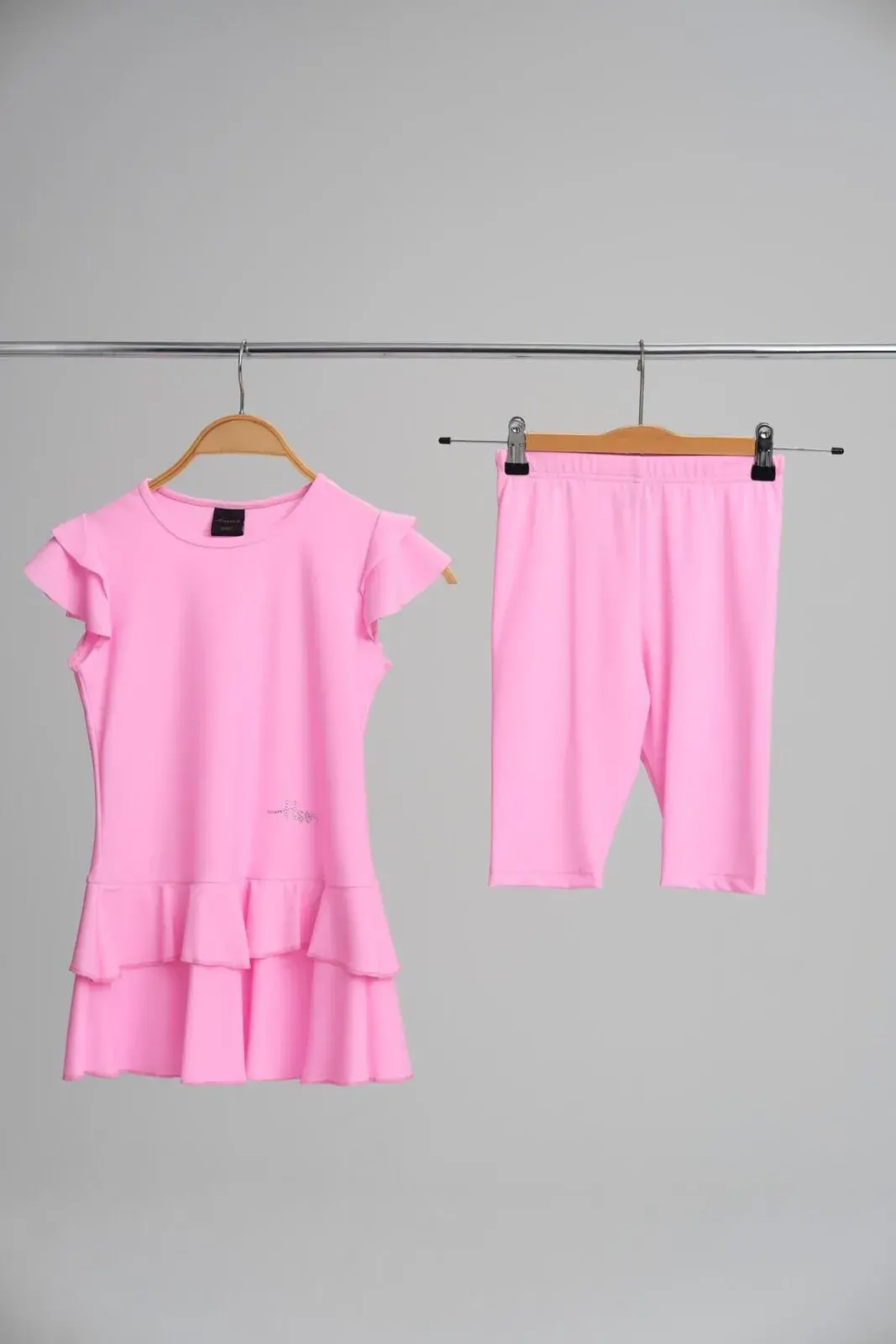Haşema Revna Kısa Kol Pembe Kız Çocuk Havuz Mayo Takımı H-2821
