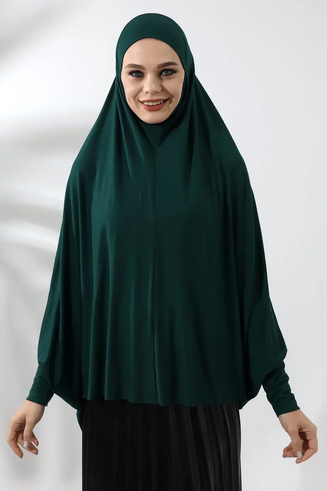 Zümrüt Yeşili Hazır Pratik Sultanbaş Tesettür Kollu Penye Sufle Eşarp Hijab