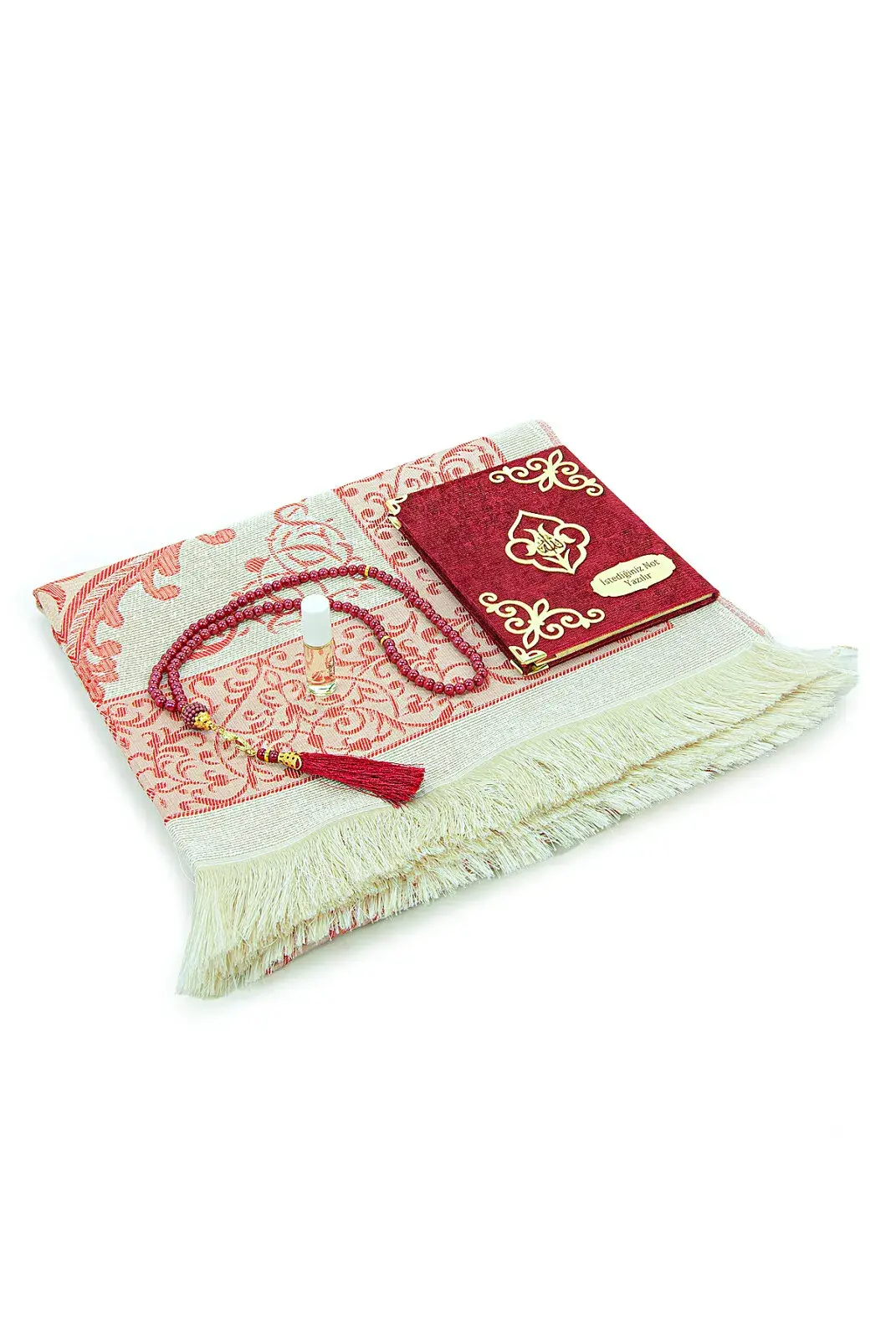 Özel günlerde, mevlüt hediyeliği olarak veya cemiyetlerinizde sevdiklerinize anlamlı bir dini hediye vermek için bu set, manevi değeri yüksek ve zarif bir seçimdir.