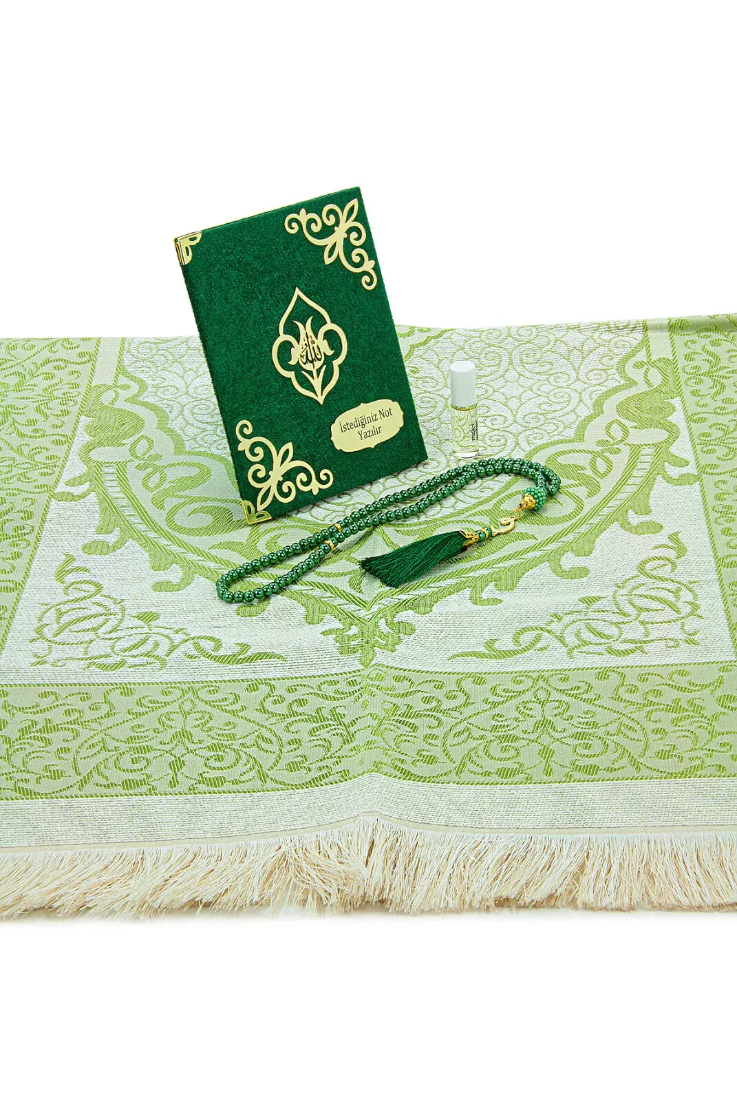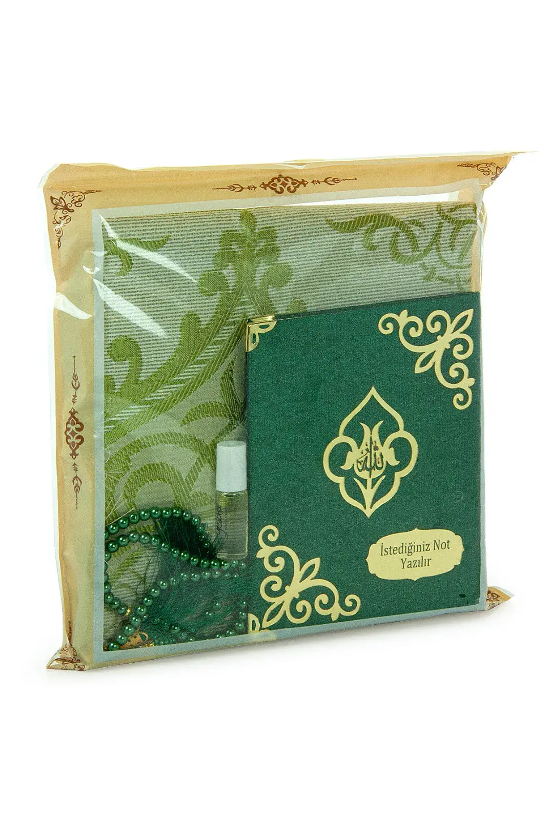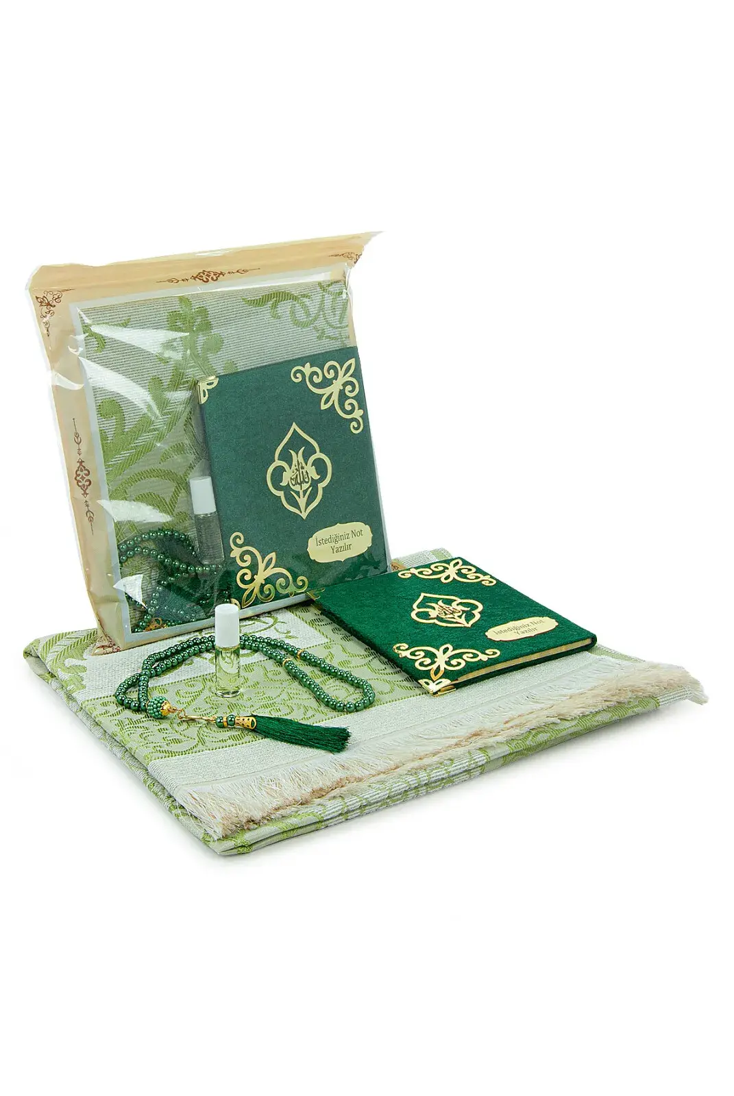 Özel günlerde, mevlüt hediyeliği olarak veya cemiyetlerinizde sevdiklerinize anlamlı bir dini hediye vermek için bu set, manevi değeri yüksek ve zarif bir seçimdir.