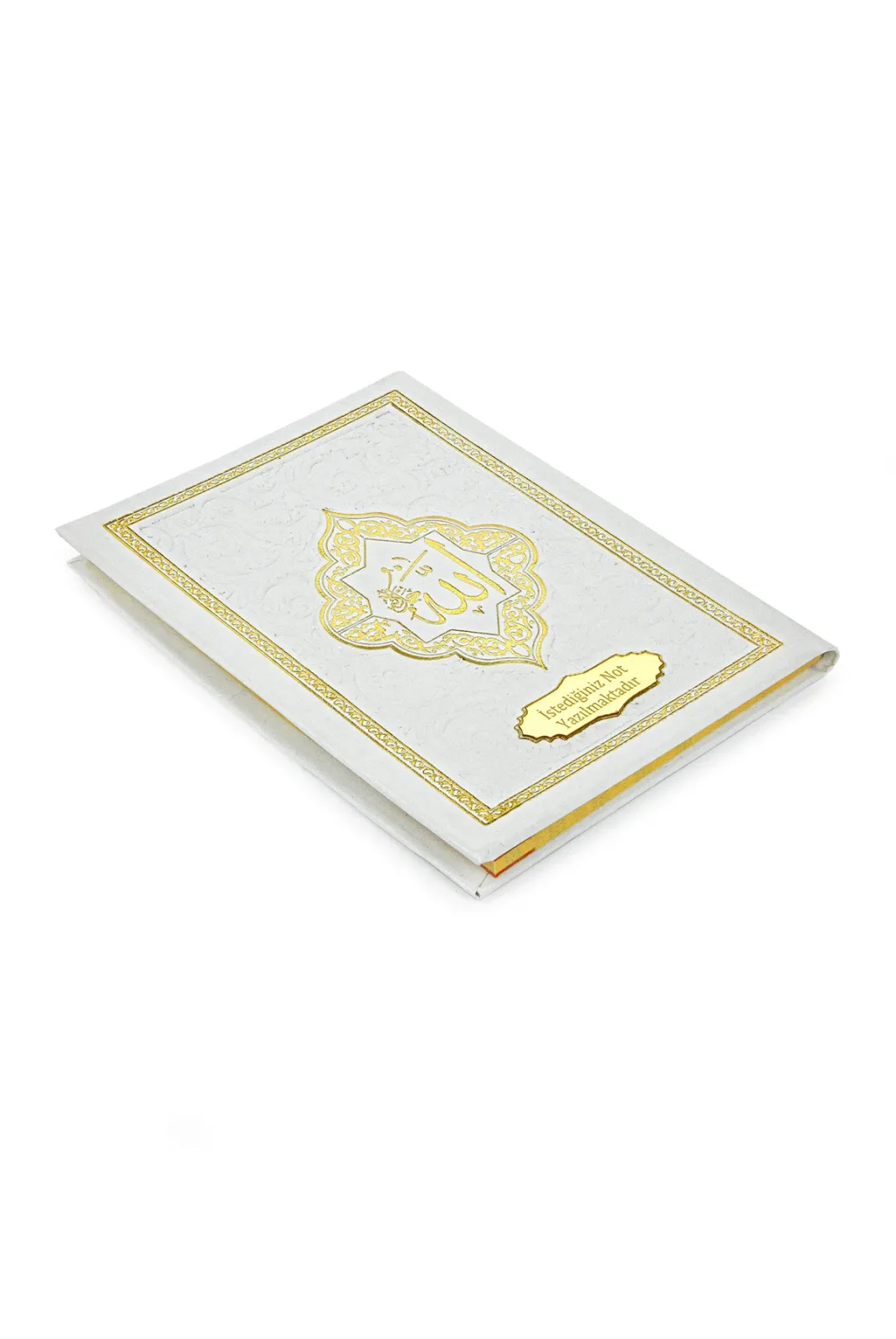 Hediyelik İsme Özel Kabartmalı Yaldızlı Deri Ciltli Yasini Şerif Kitabı - Çanta Boy – 128 Sayfa - Beyaz
