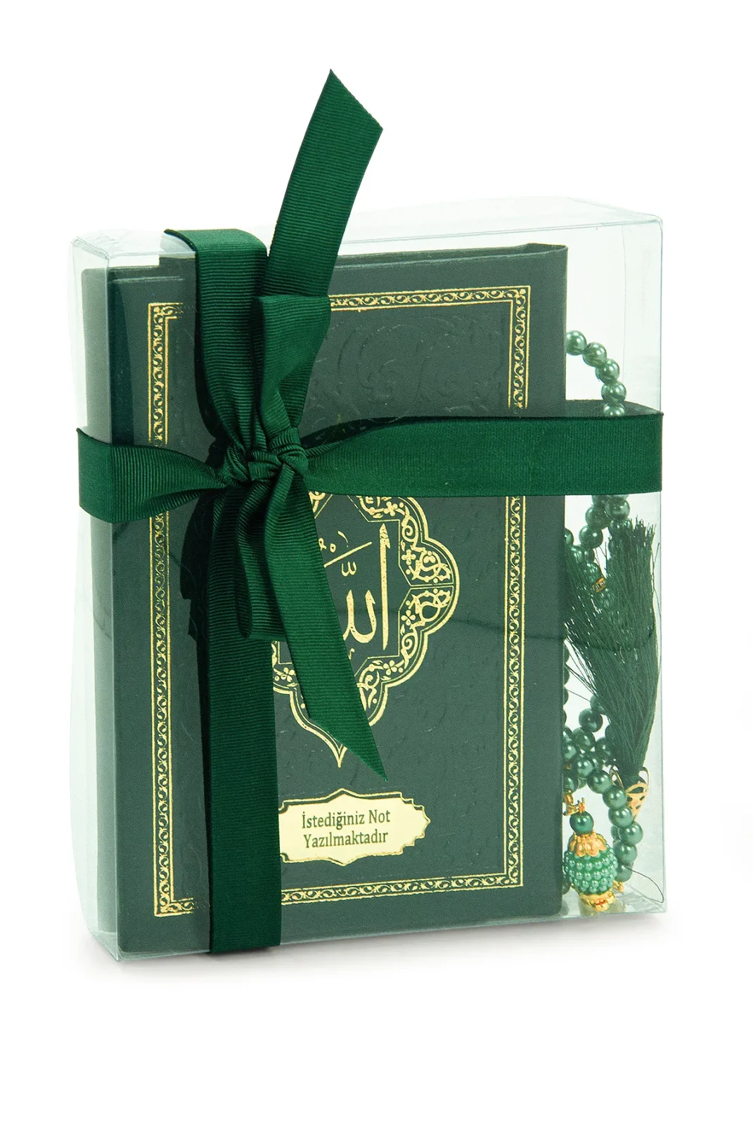 Hediyelik İsme Özel Kabartmalı Yaldızlı Deri Ciltli Yasini Şerif Kitabı - Çanta Boy – 128 Sayfa - Yeşil