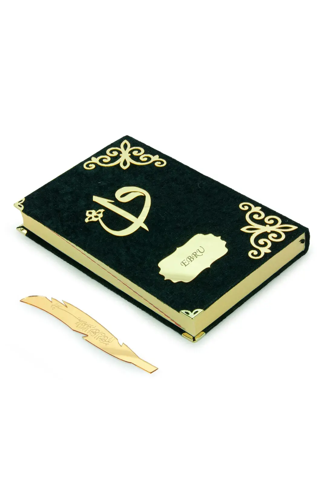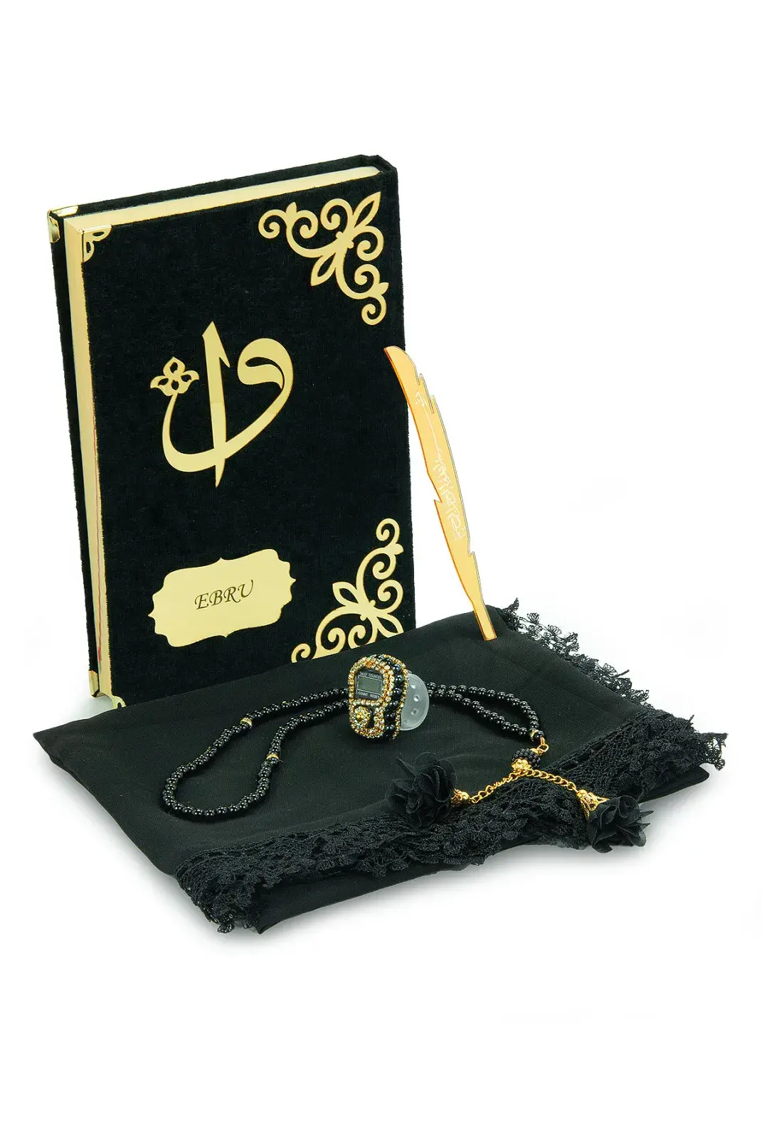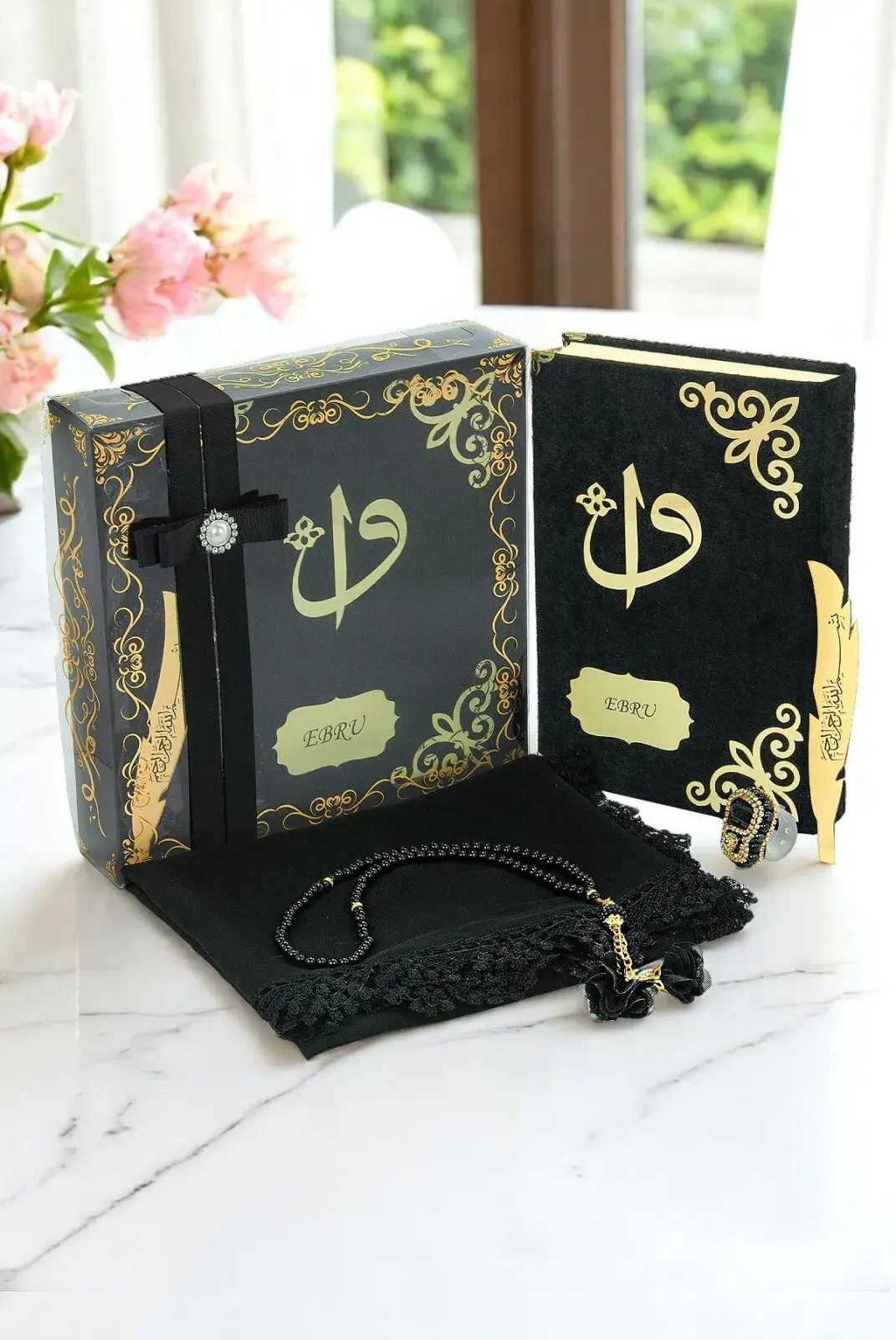 Hediyelik İsme Özel Kuranı Kerim Seti Şal Tesbih Zikirmatik Siyah
