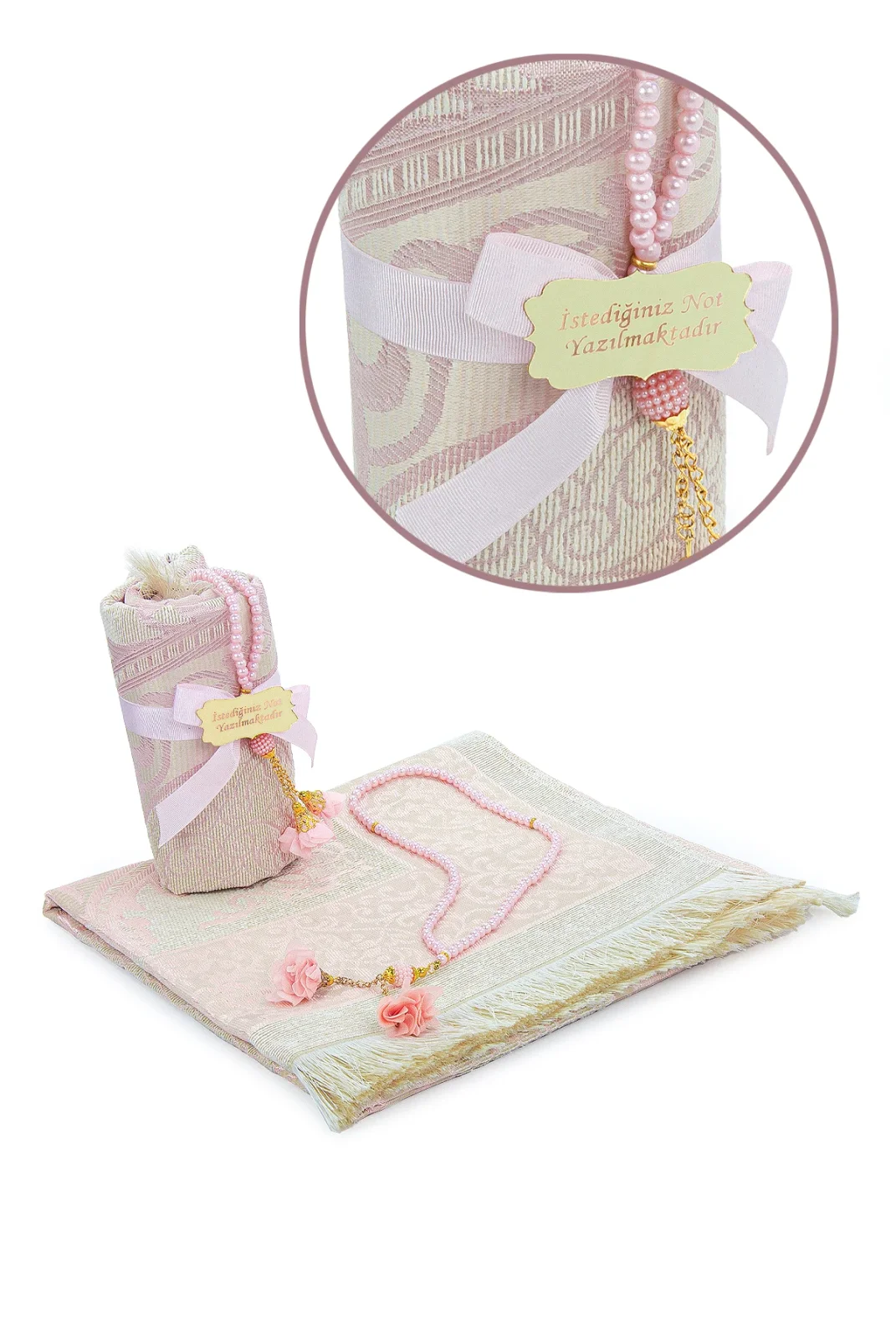 Şık pembe tonlarıyla hazırlanmış hediyelik isme özel tesbihli seccade seti, zarif detaylarıyla özel günlerinize anlam katar. Pleksi isim etiketi, inci görünümlü tesbih ve modern desenli seccadesiyle hem estetik hem de manevi bir hediye alternatifi sunar.