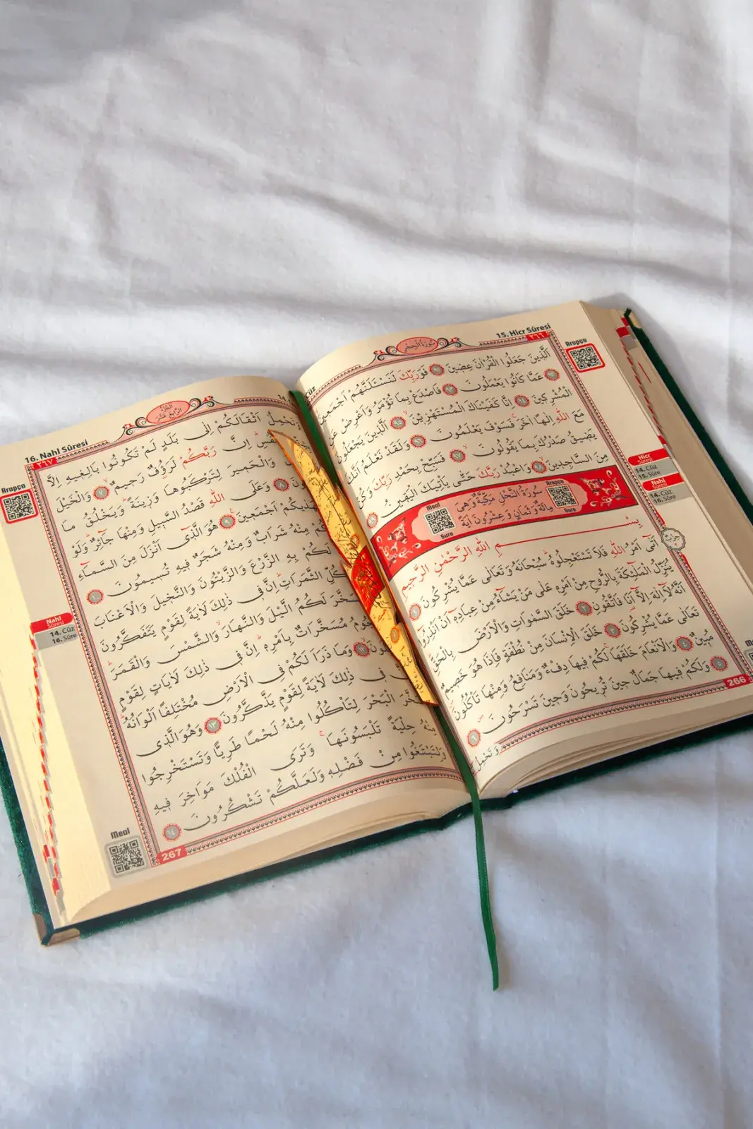 • Kadife Kaplı Kuranı Kerim' lerin Tamamında Sayfaların Hasar Görmesini ve Kaplanan Kadife Kumaşın Sabit Durmasını Sağlayan Koruyucu Köşe Demirler Mevcuttur.