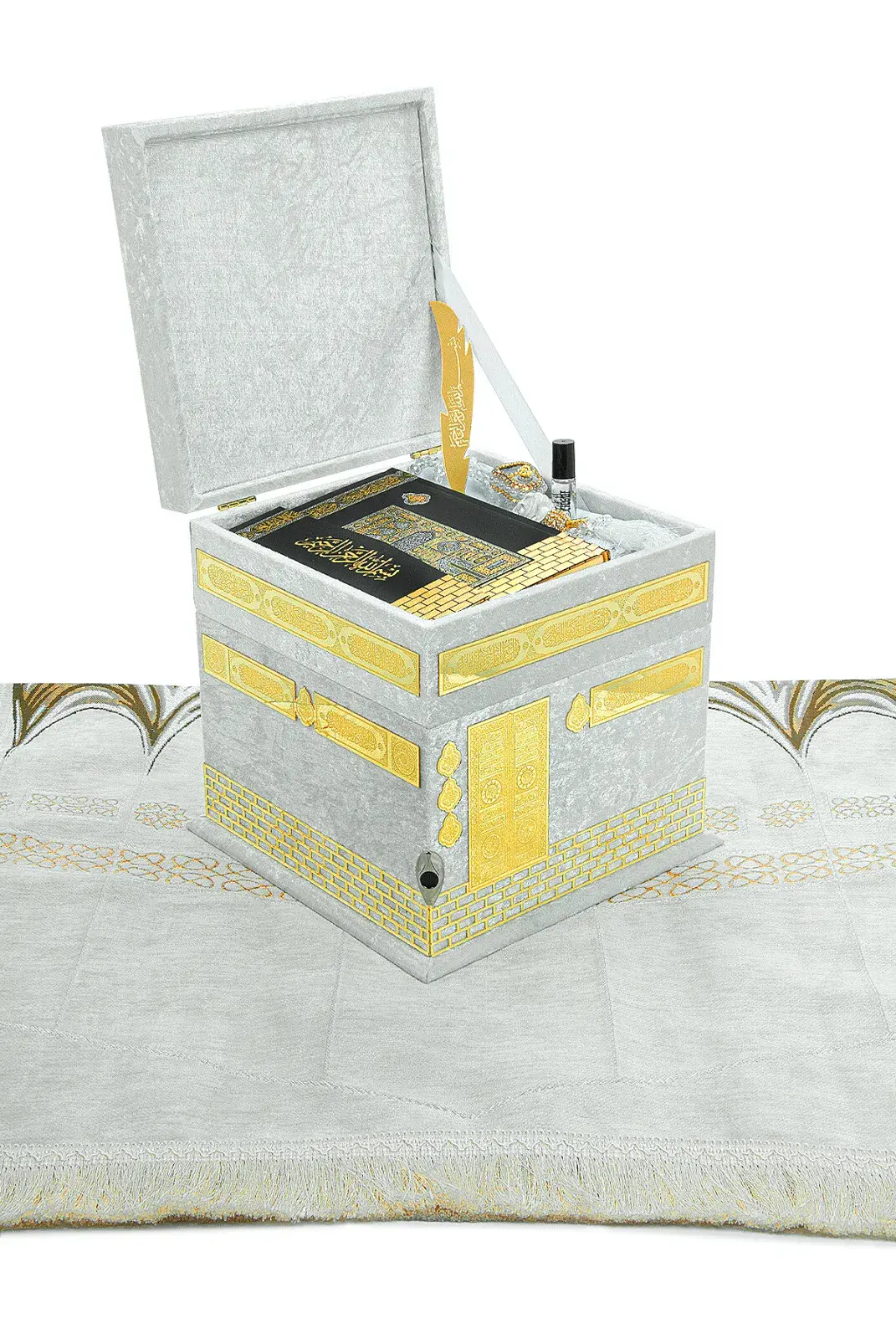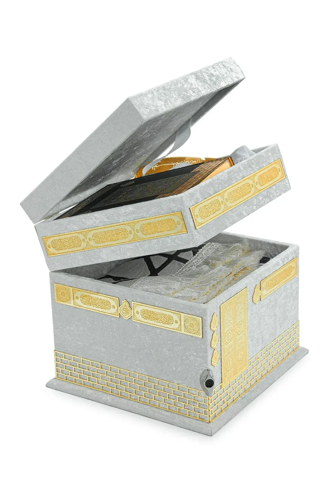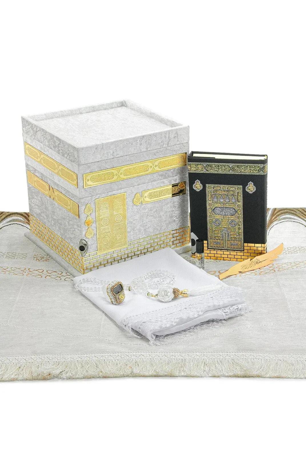 1 Adet Kabeli Kuran-ı Kerim: 20 x 14 cm boyutlarında, Kabe desenli Kuran-ı Kerim.