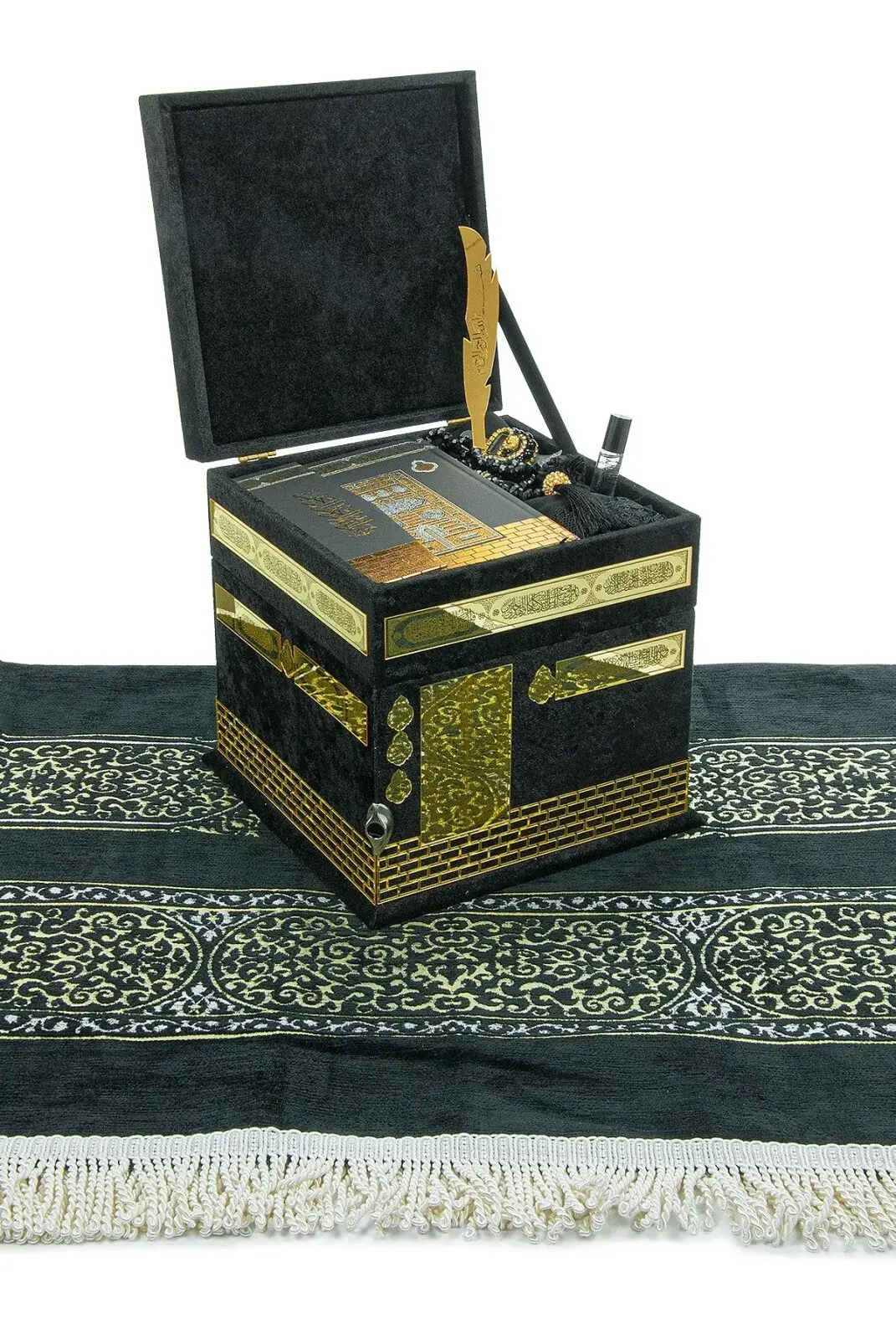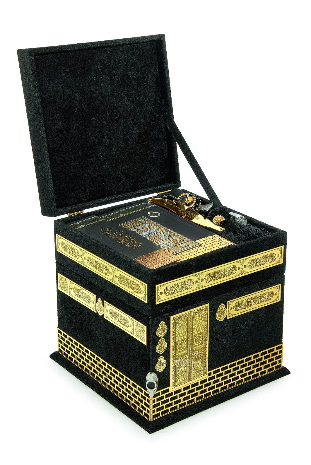 1 Adet Kabeli Kuran-ı Kerim: 20 x 14 cm boyutlarında, Kabe desenli Kuran-ı Kerim.