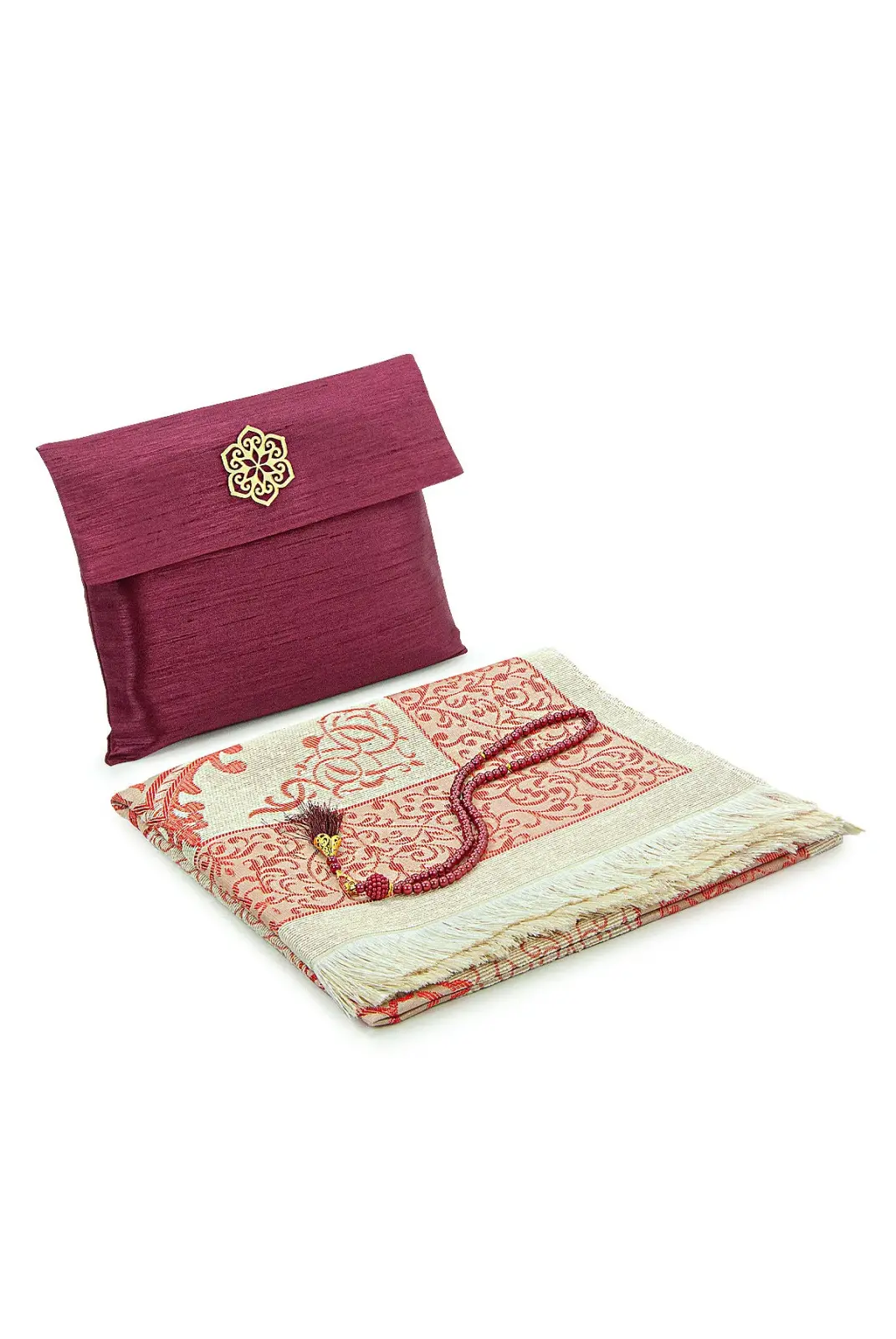 Hediyelik Şantuk Çantalı, Tesbihli, Çeyizlik Seccade Seti - Bordo