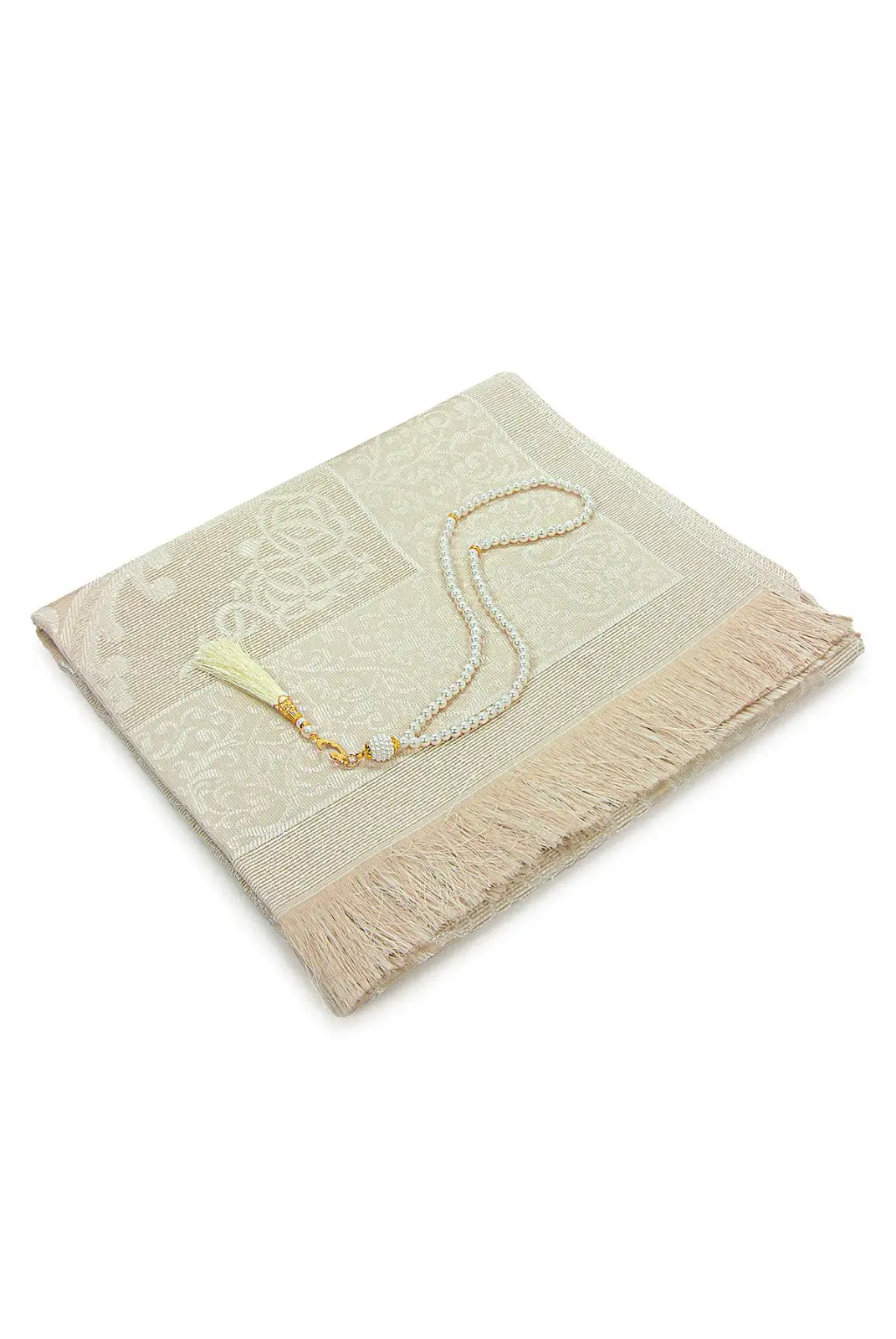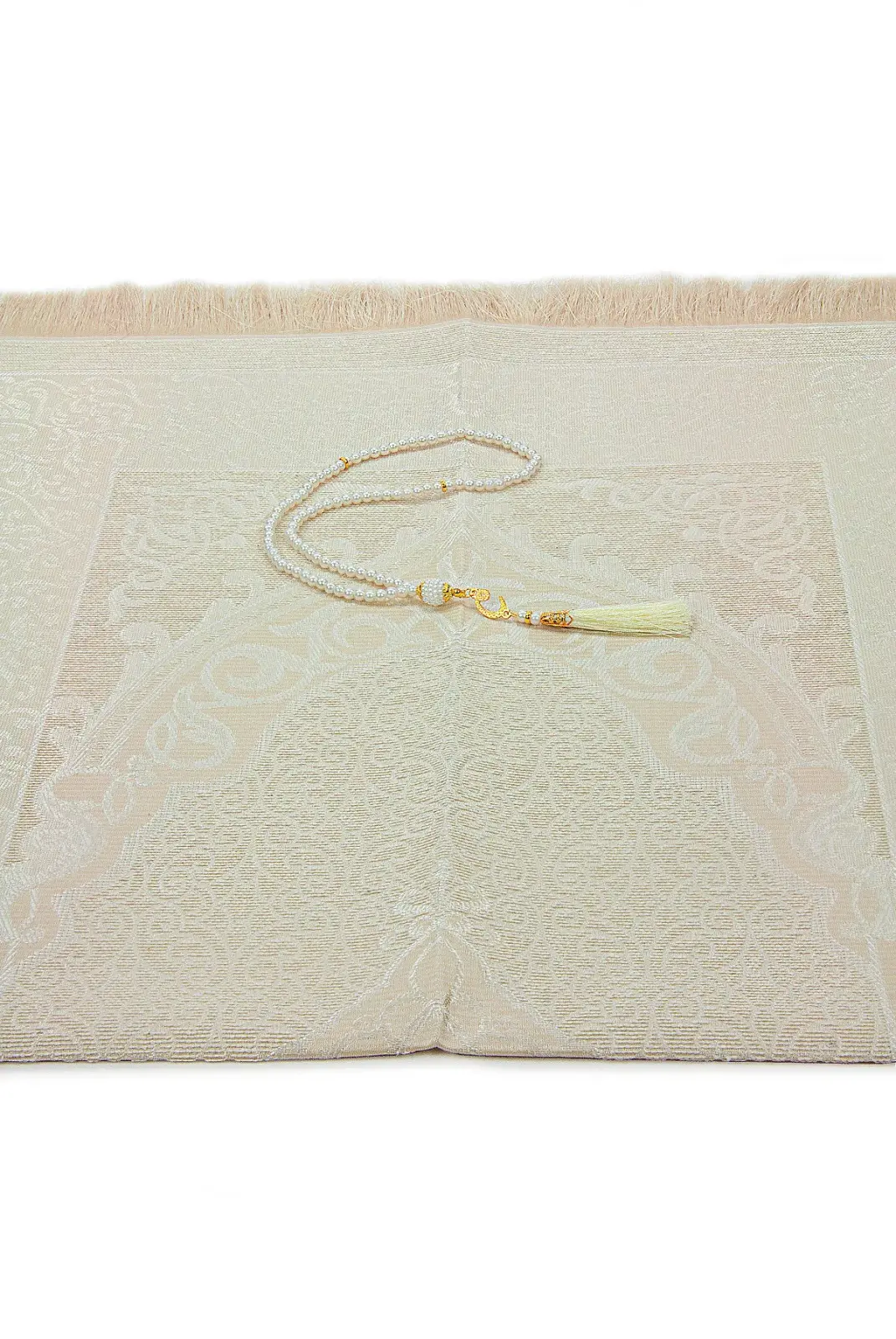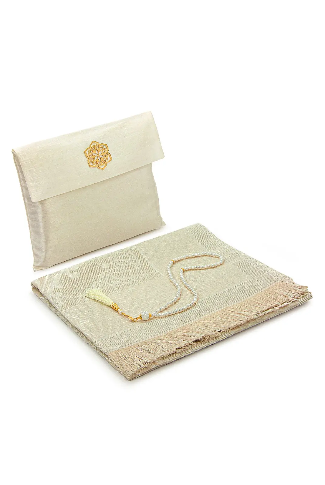 Hediyelik Şantuk Çantalı, Tesbihli, Çeyizlik Seccade Seti - Krem