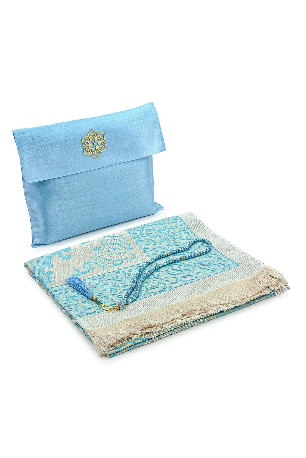 Hediyelik Şantuk Çantalı, Tesbihli, Çeyizlik Seccade Seti - Mavi