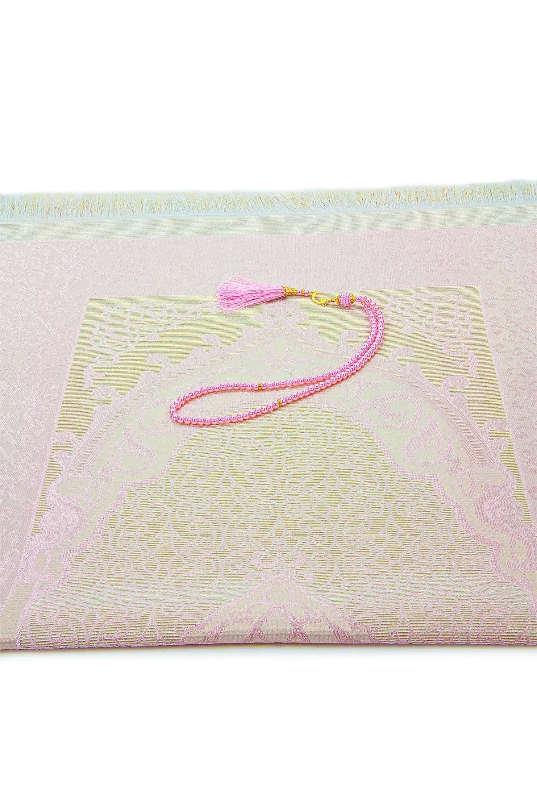 Şık tasarımı ve zarif detaylarıyla özel günlerde dağıtılabilecek ideal bir hediye seti. Seccade, hafif yapısı sayesinde taşıması kolaydır ve günlük kullanıma uygundur. Parlak iplikten dokunan kumaşı, ışığa göre değişen yanar döner efekt verir ve ürüne zarafet katar.