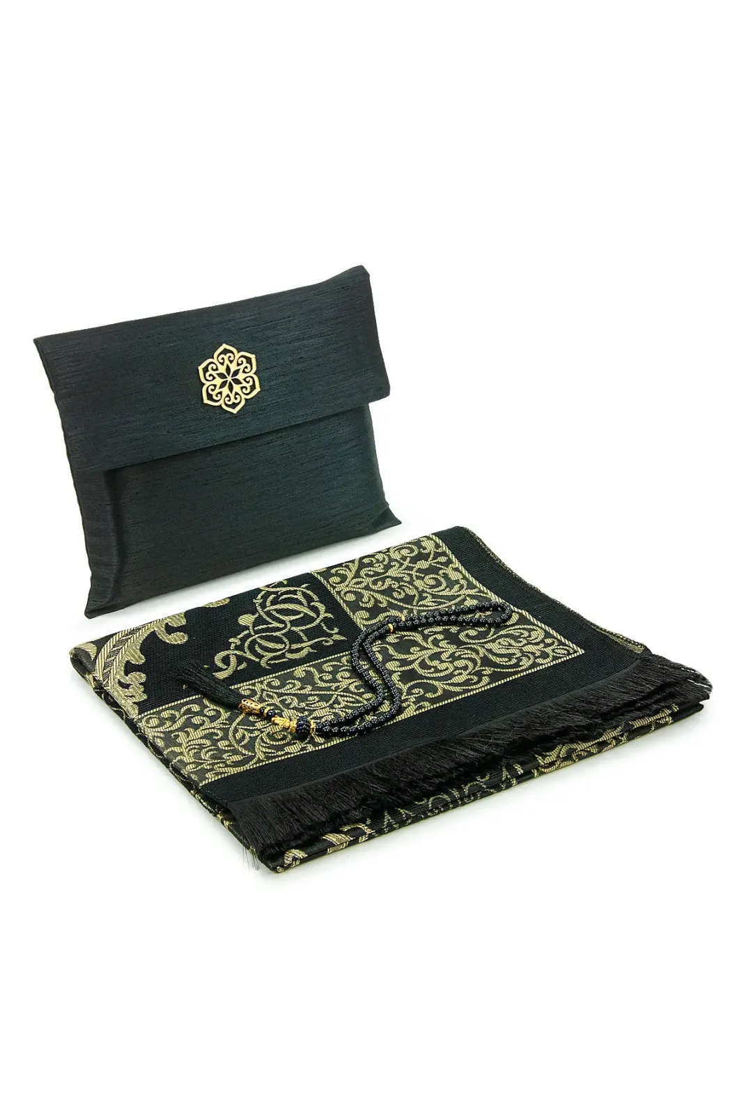 Hediyelik Şantuk Çantalı, Tesbihli, Çeyizlik Seccade Seti - Siyah