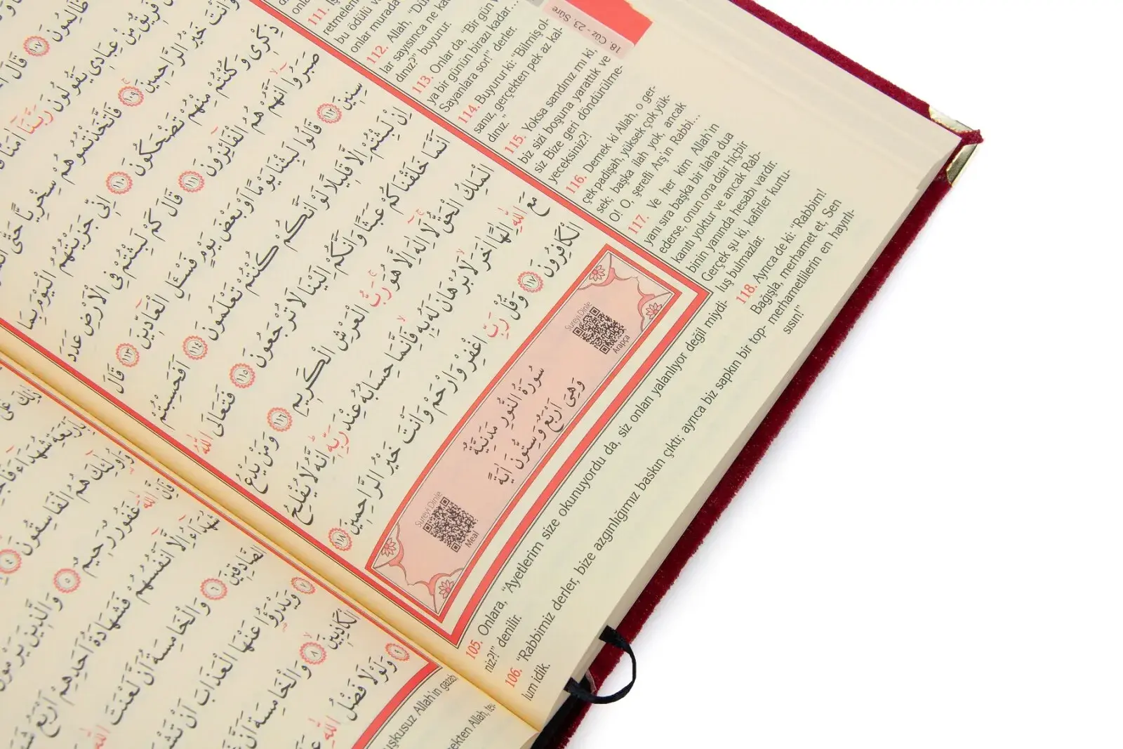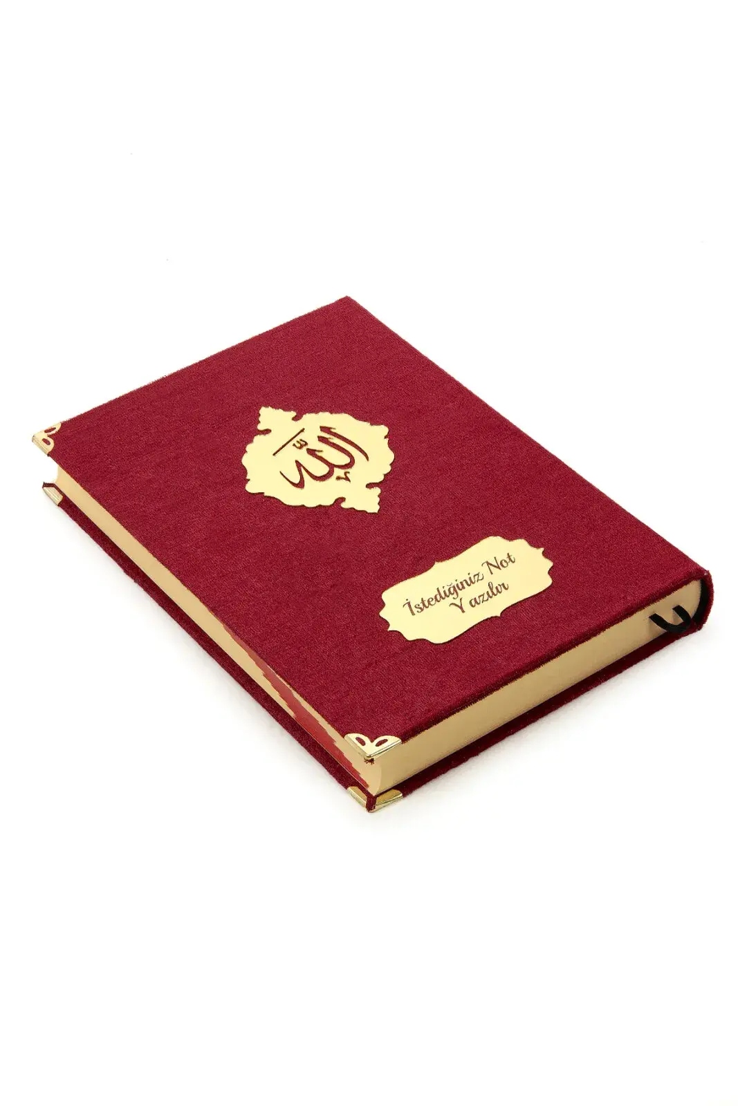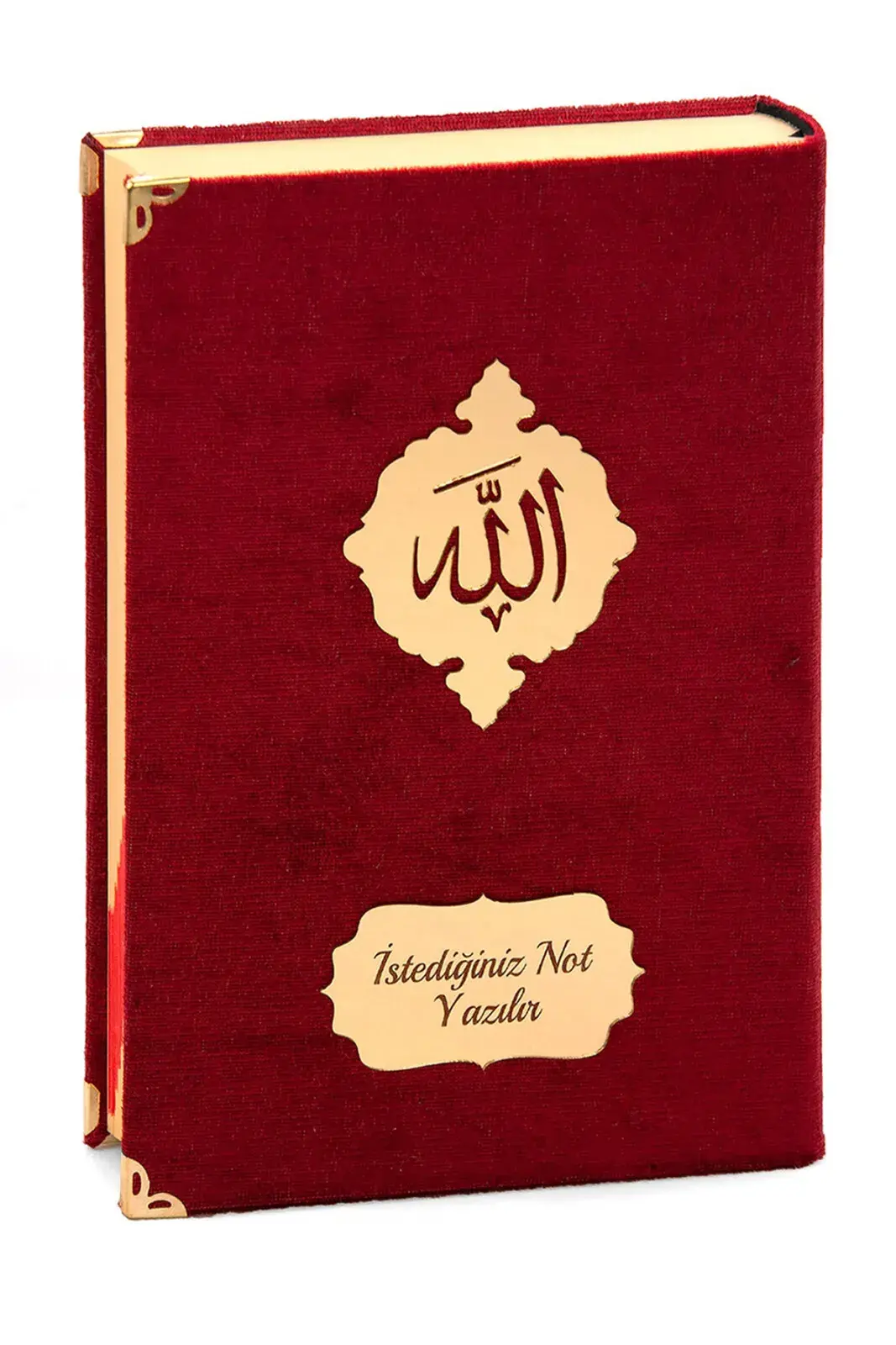 Hediyelik Türkçe Mealli İsme Özel Orta Boy Kadife Kaplı Kuranı Kerim Bordo