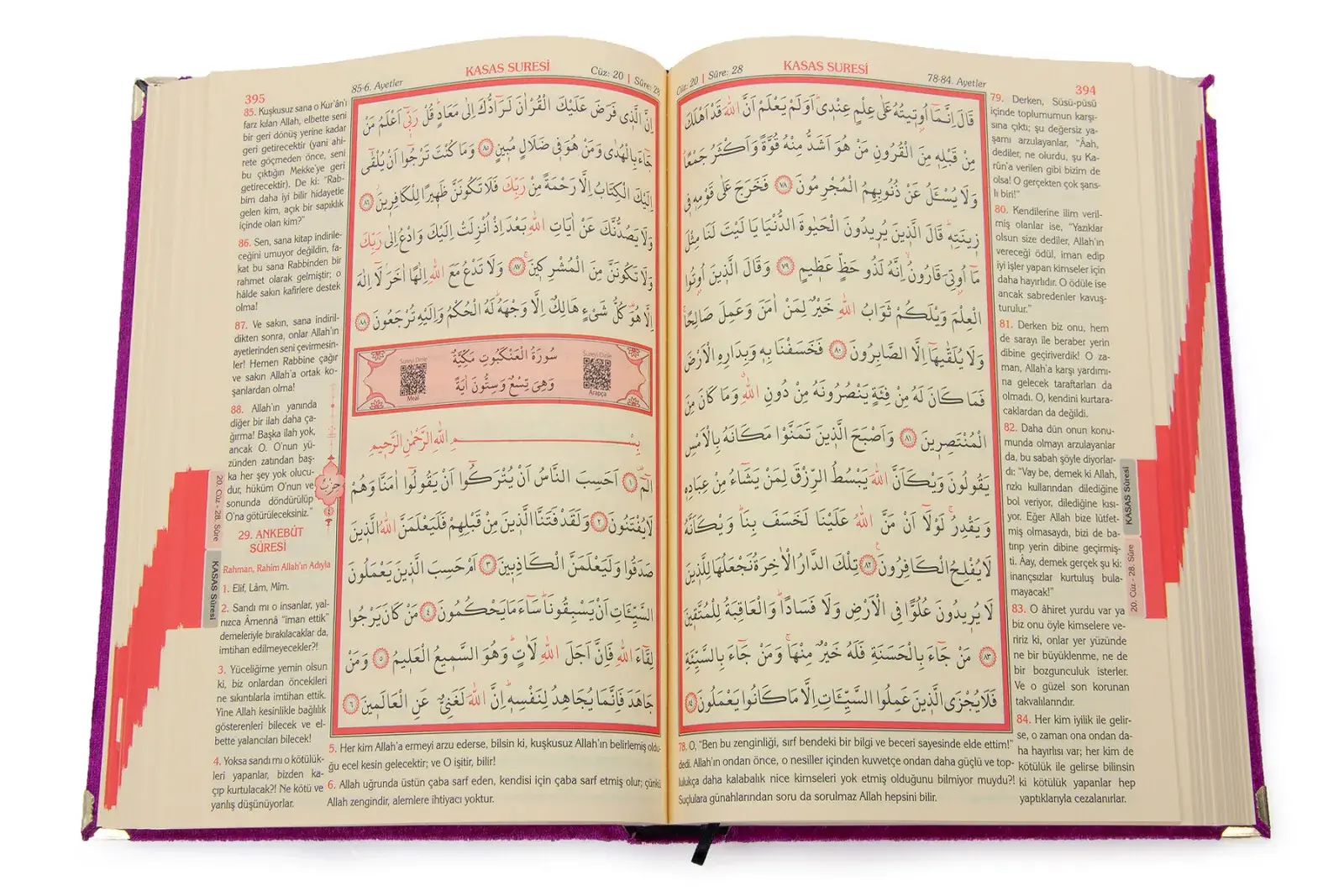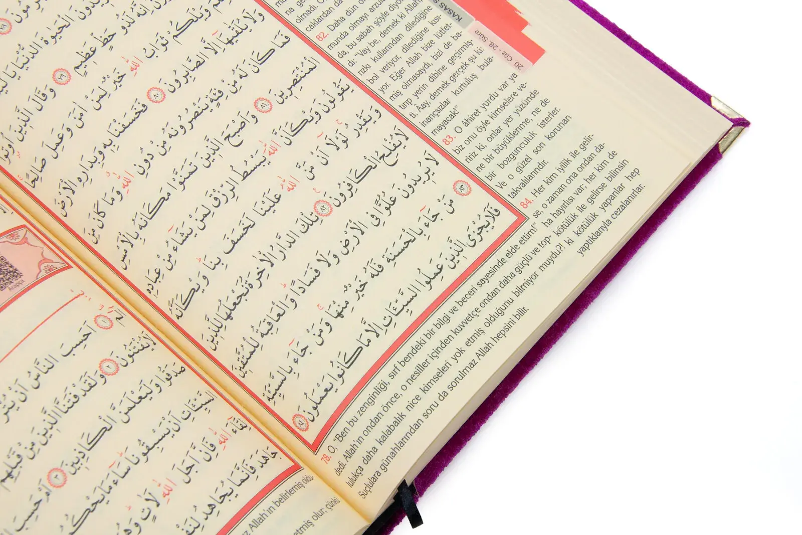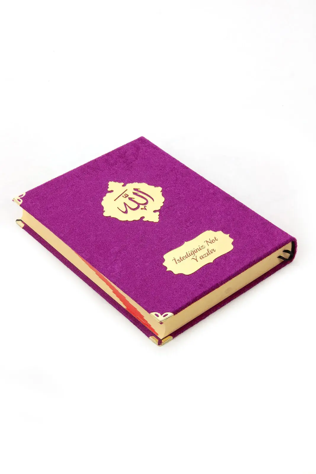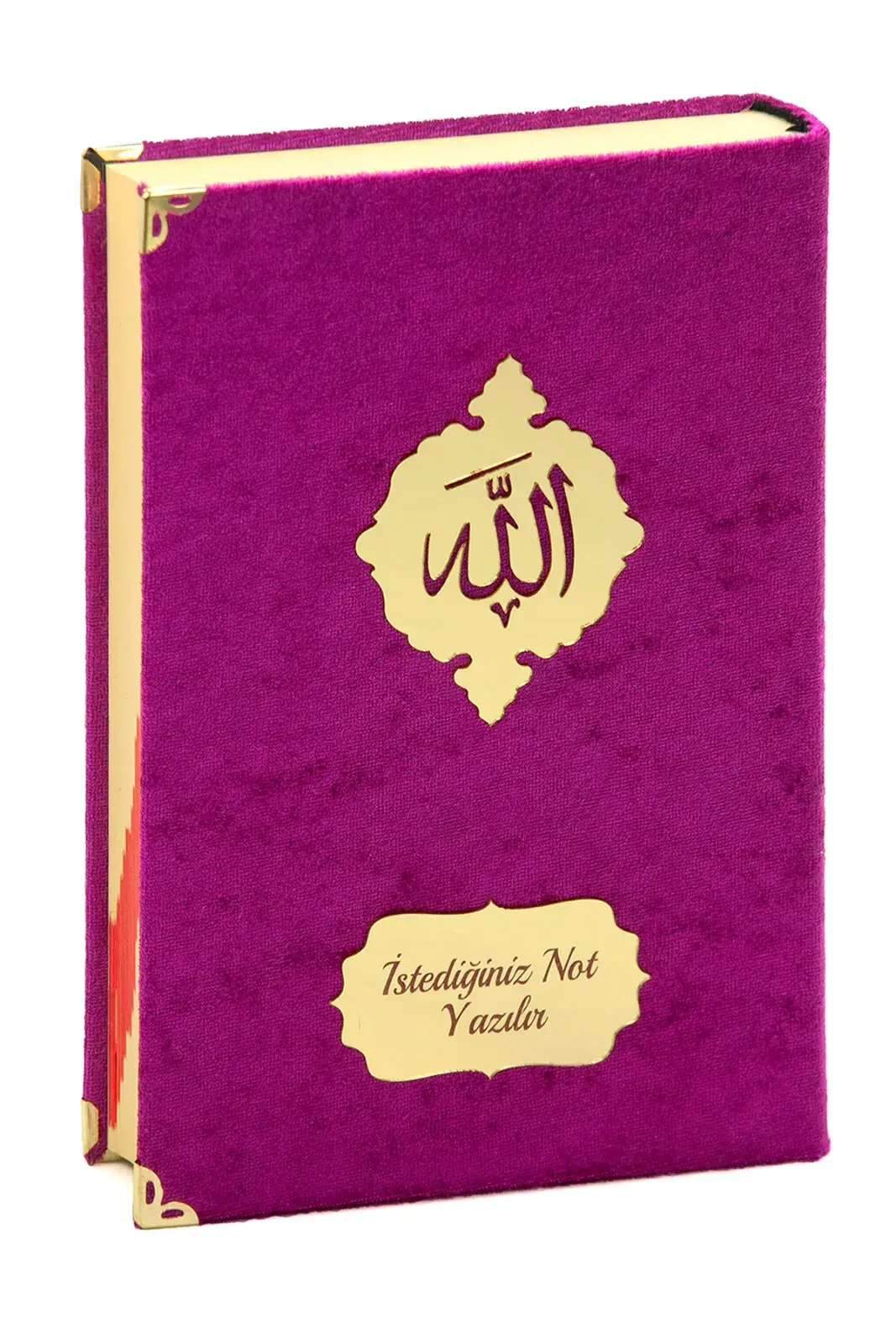 Hediyelik Türkçe Mealli İsme Özel Orta Boy Kadife Kaplı Kuranı Kerim Fuşya