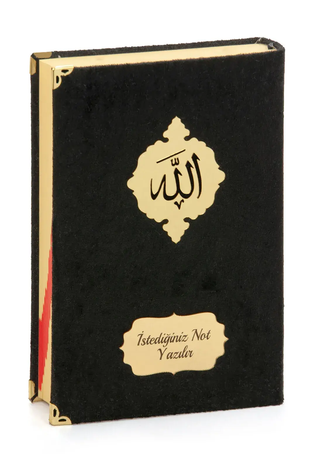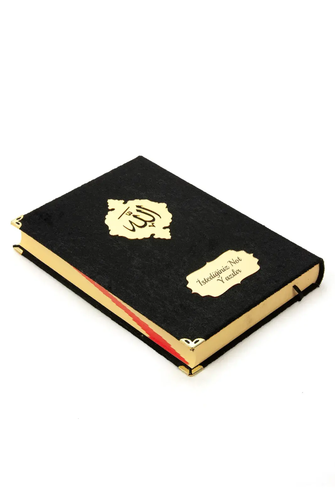Hediyelik Türkçe Mealli İsme Özel Orta Boy Kadife Kaplı Kuranı Kerim Siyah