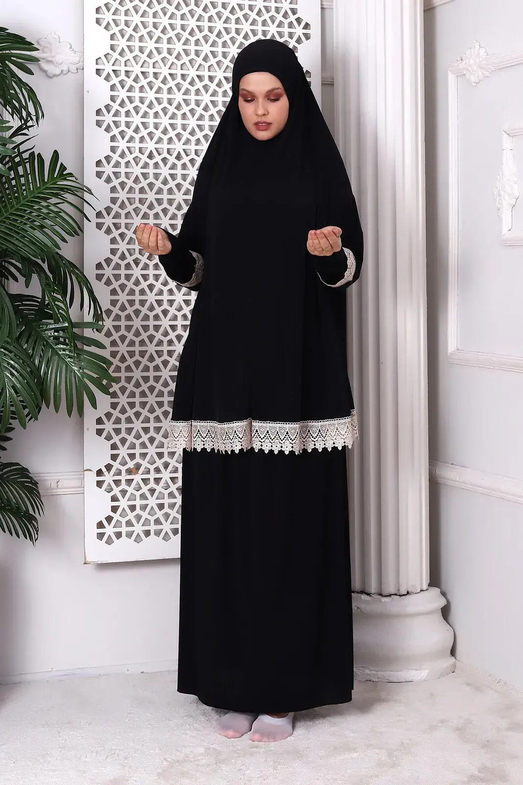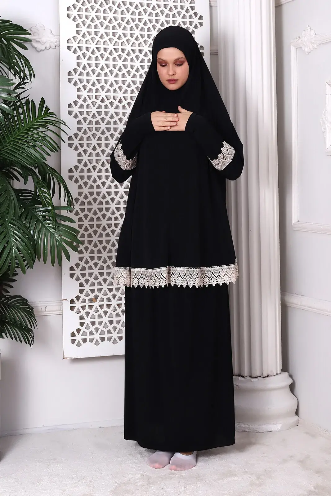 İki Parça Fistolu Pratik Alt Üst Namaz Elbisesi 8018 Siyah