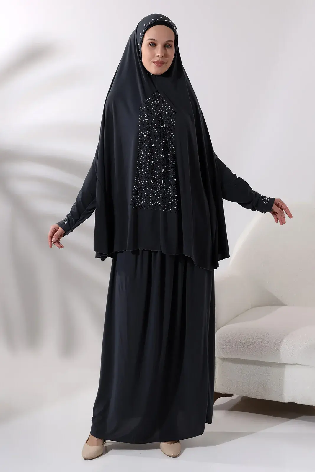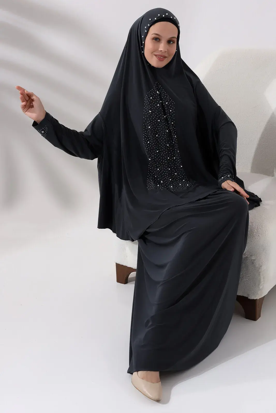 Ürün başörtüsüyle yekpare oluşur, pratik ve kolay giyilir.