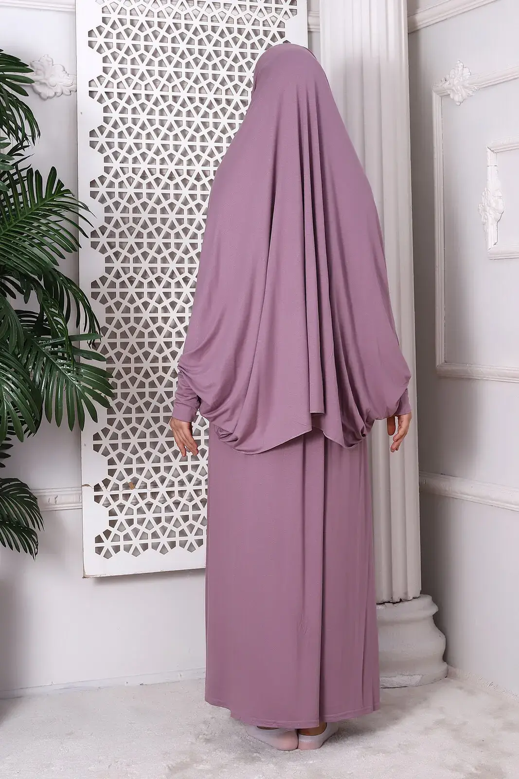 İki Parça Pratik Namaz Elbisesi 8016 Gül Kurusu