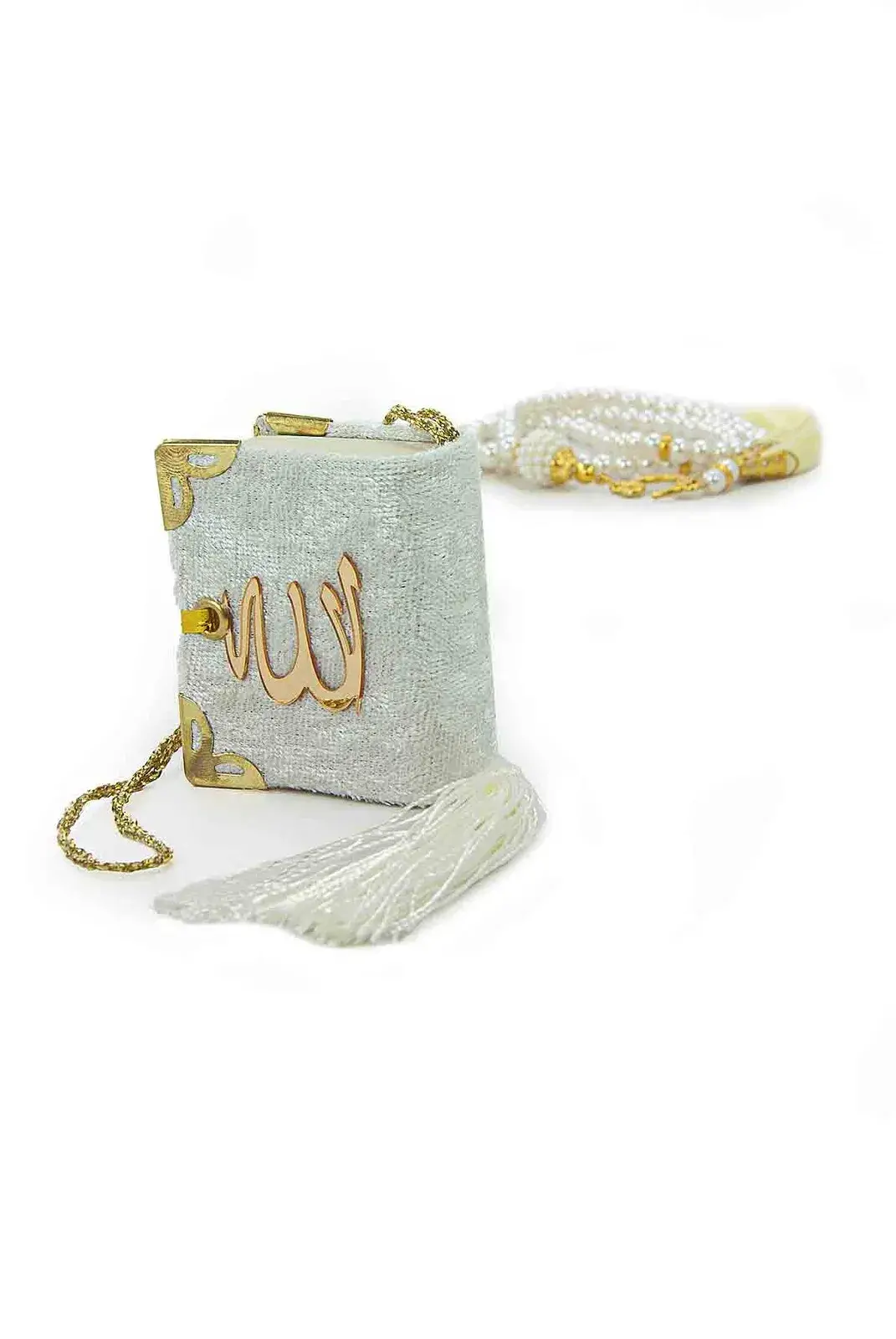 Bu zarif ve anlamlı set, özenle hazırlanmış kadife kaplamalı bir mini Kuran-ı Kerim ve bir İnci Görünümlü 99 boncuklu tesbihten oluşuyor. Kompakt boyutu (16 x 5.5 x 1.5 cm) sayesinde her yere kolayca taşınabilir ve pratik bir kullanım sunar. Ürün, 80 gram ağırlığıyla hafif ve taşıması rahattır. Bu özel set, hem kişisel ibadetlerde hem de hediye amaçlı mükemmel bir seçenektir.