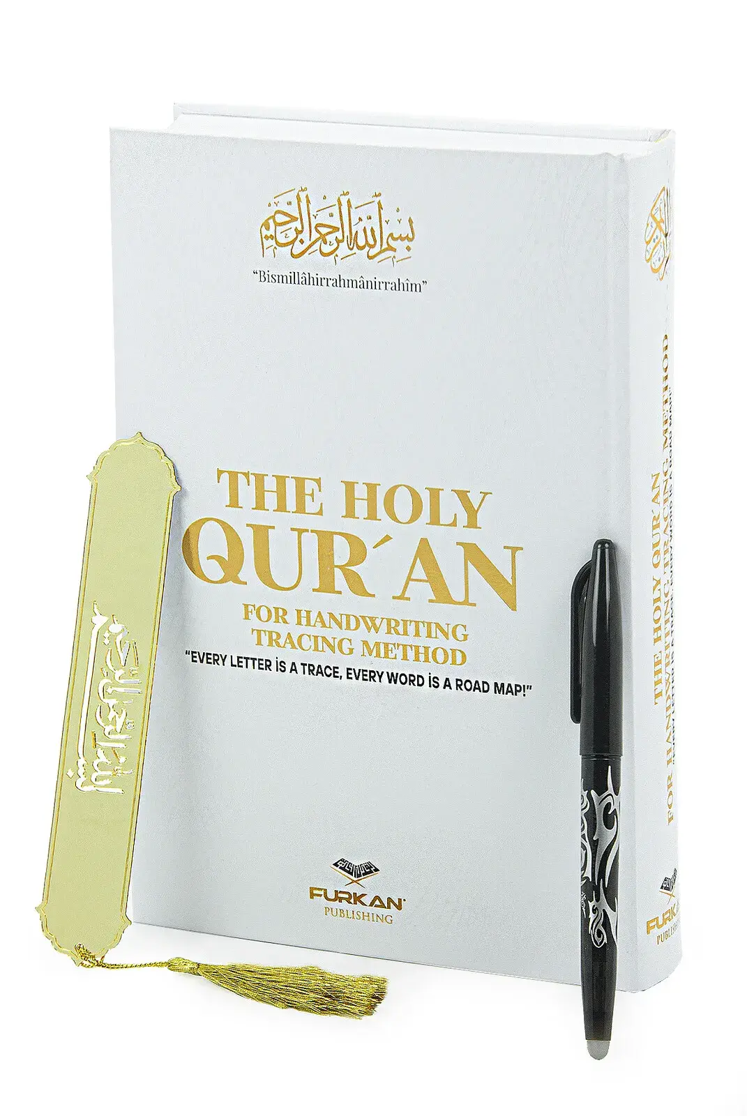 İngilizce Silinebilir Kalemli Gölgeli Kuranı Kerim - Hafızlar için Arapça El Yazısı Pratik Kitabı Beyaz