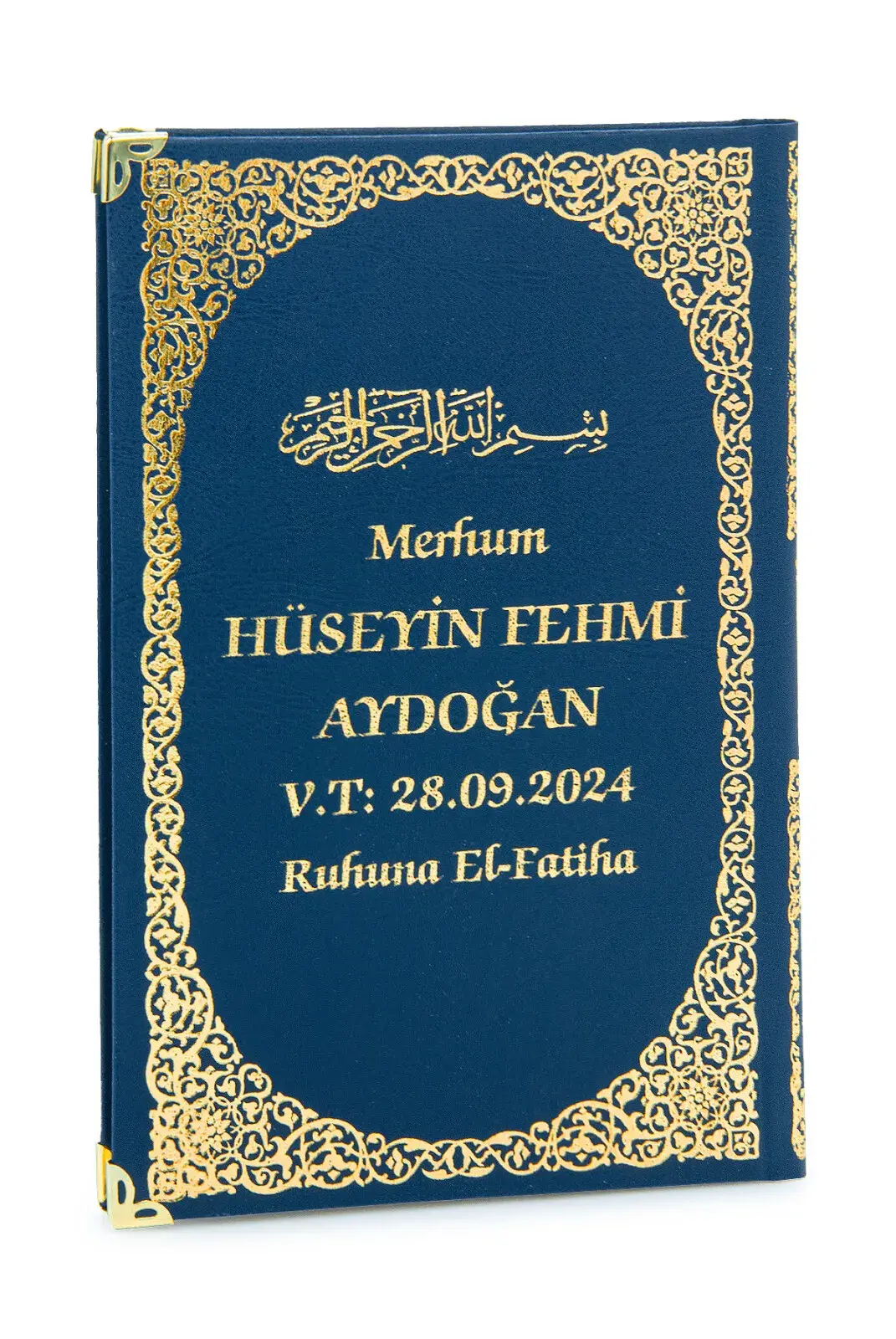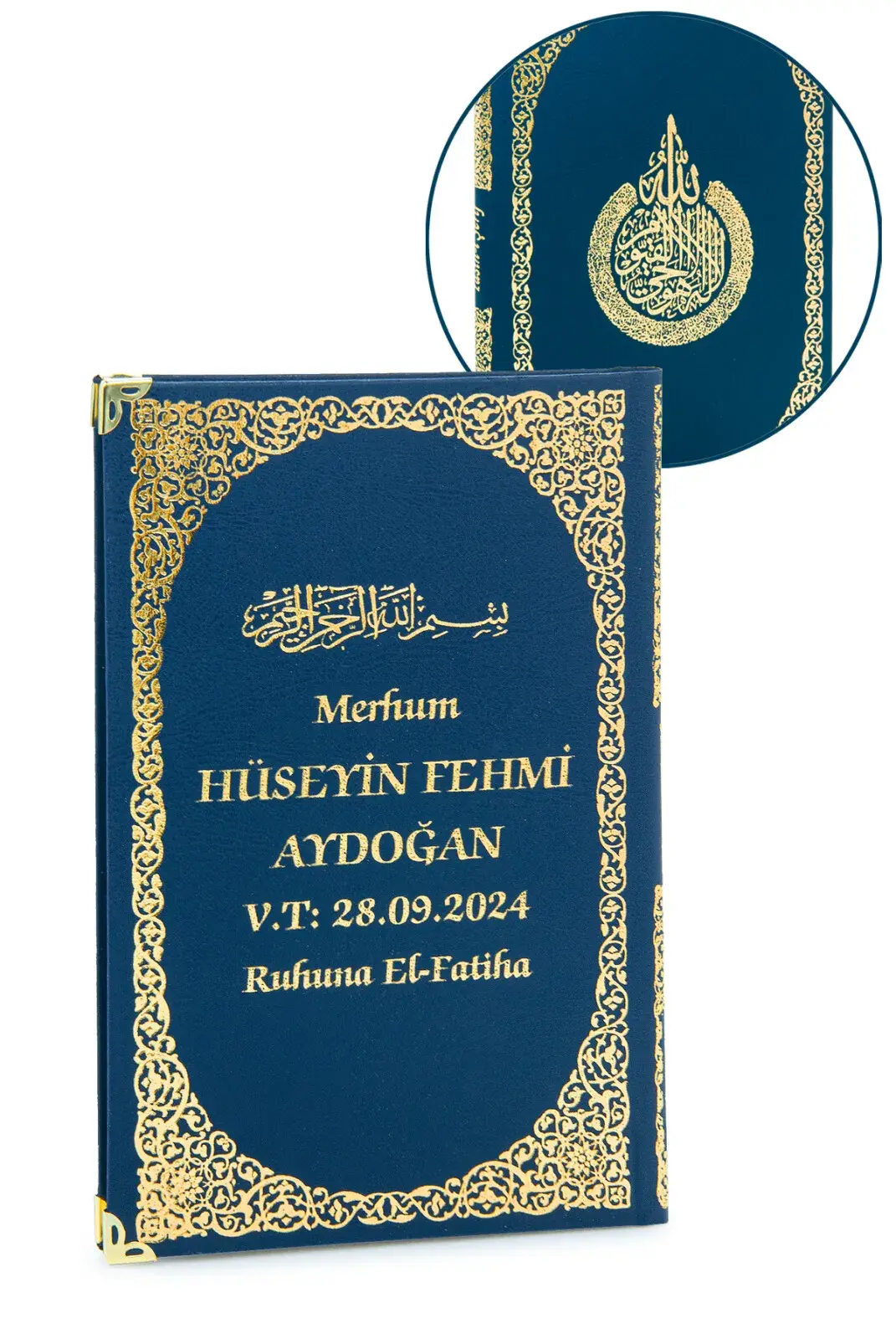 İsim Baskılı Ayet-el Kürsi Desenli Yaldızlı Deri Ciltli Orta Boy Yasin Kitabı Mevlüt Hediyesi 128 Sayfa Lacivert