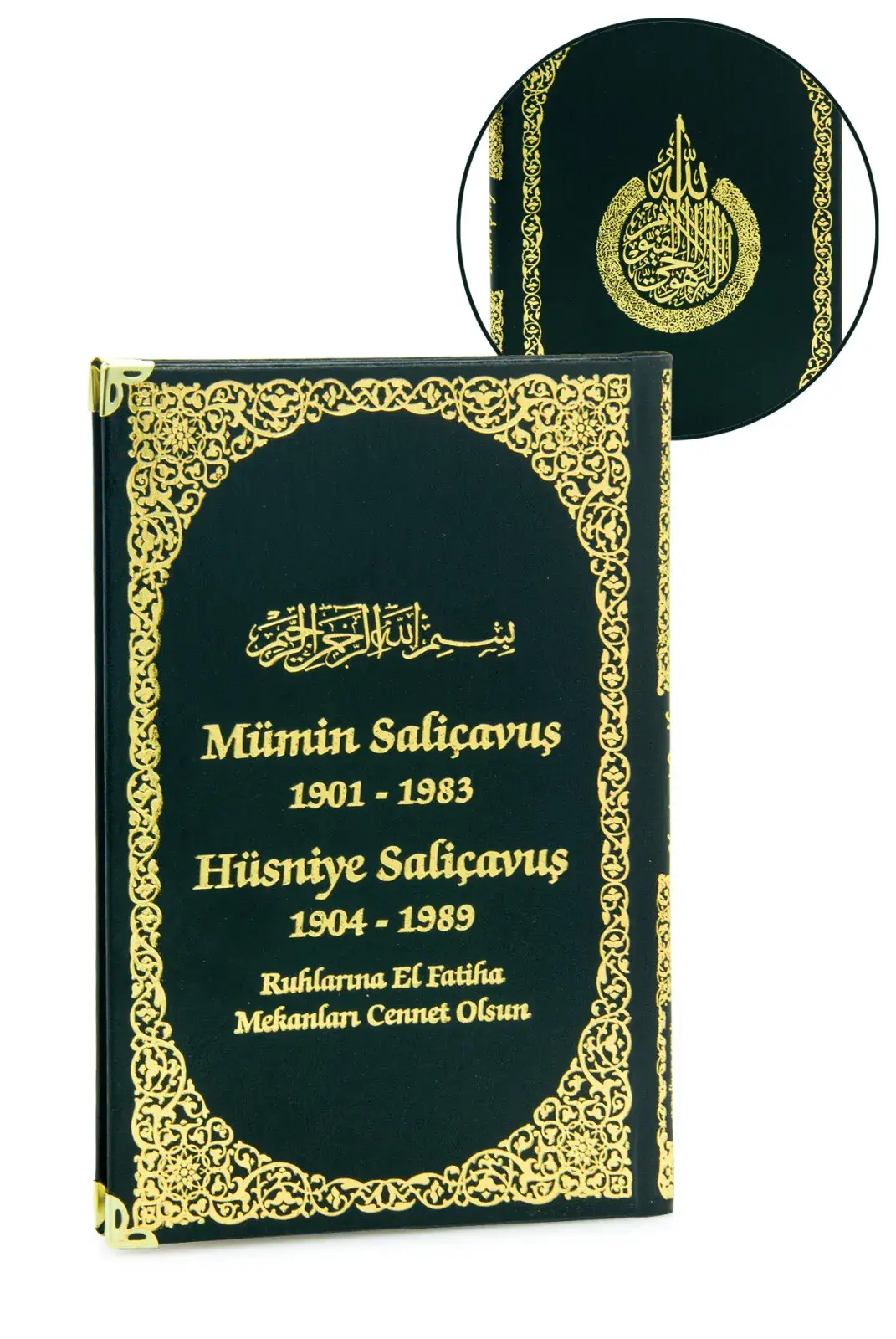 İsim Baskılı Ayet-el Kürsi Desenli Yaldızlı Deri Ciltli Orta Boy Yasin Kitabı Mevlüt Hediyesi 128 Sayfa Siyah