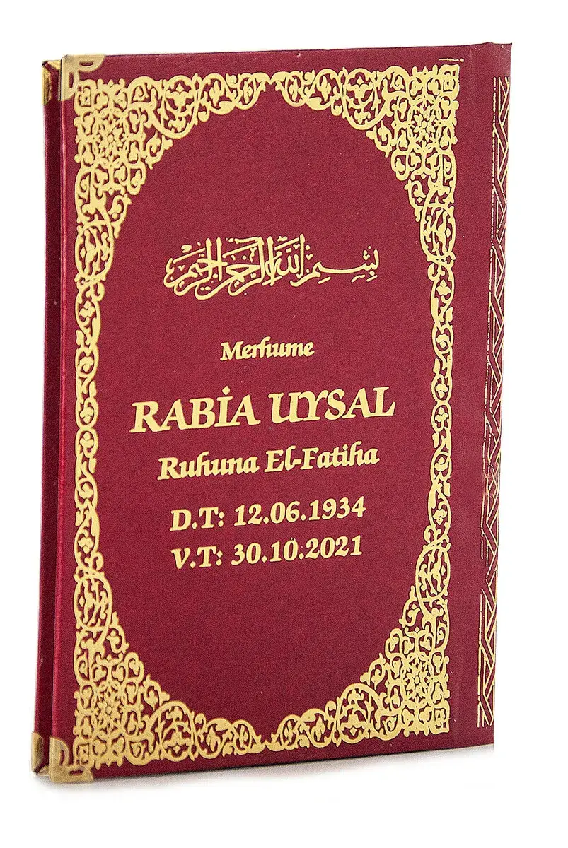 Merhum ismi, doğum tarihi, vefat tarihi vb. kitap üzerinde yazılı olmasını istediğiniz bilgileri siparişinizi verirken sipariş notu kısmından veya bize mesaj yollayarak iletebilirsiniz. İsme Özel Yasinler En Az "50 Adet" Olarak Satılmaktadır. İsim Baskılı Ciltli Yasin Kitapları Kişiye Özel Oldukları İçin İadeleri Kabul Edilmemektedir!