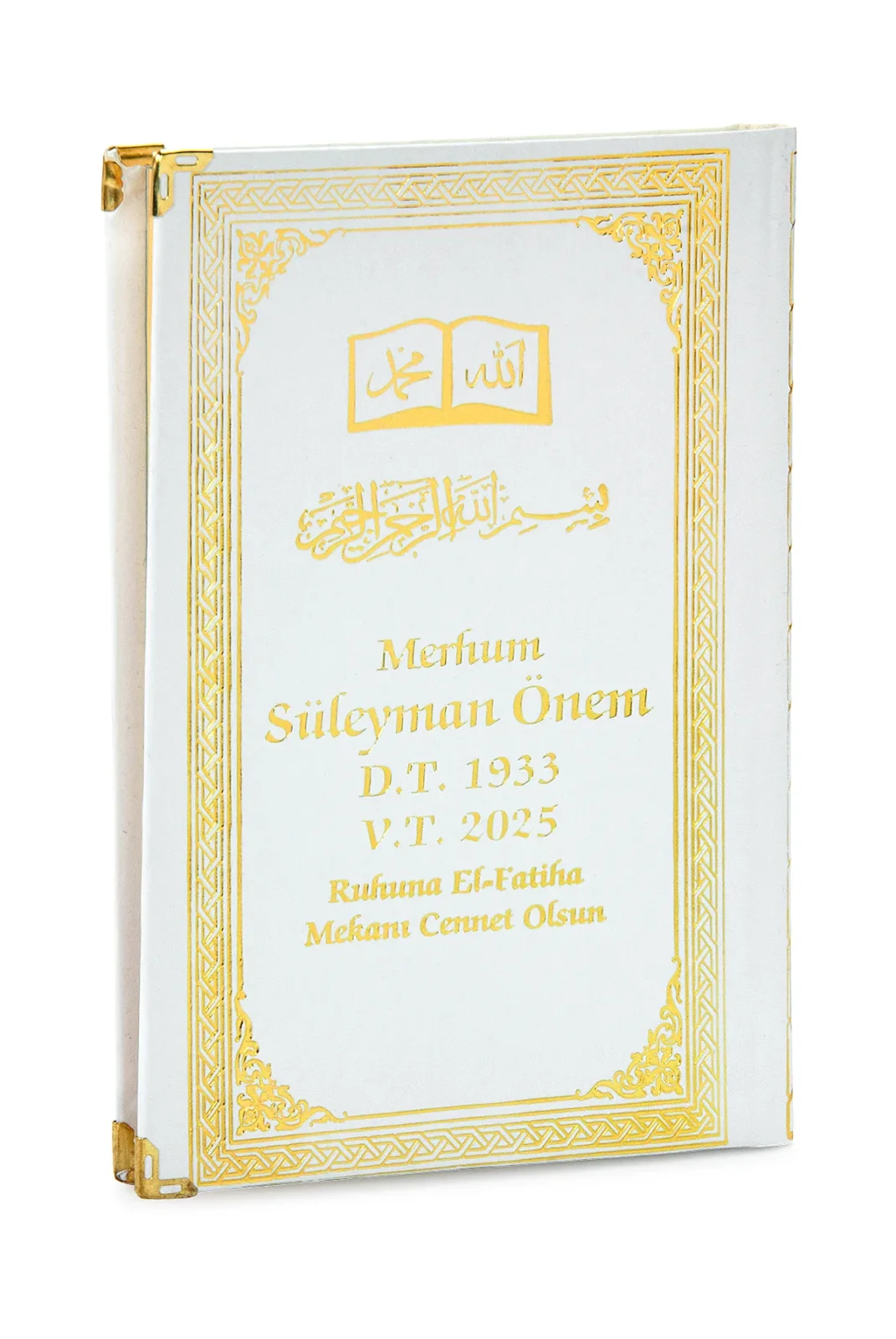 İsim Baskılı Ciltli Yasin Kitabı - Osmanlı Desenli - Orta Boy - 176 Sayfa - Beyaz Renk - Dini Hediyelik