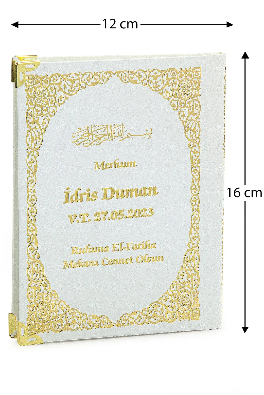 İsim Baskılı Vav Desenli Yaldızlı Deri Ciltli Çanta Boy Yasin Kitabı Mevlüt Hediyesi 128 Sayfa Beyaz