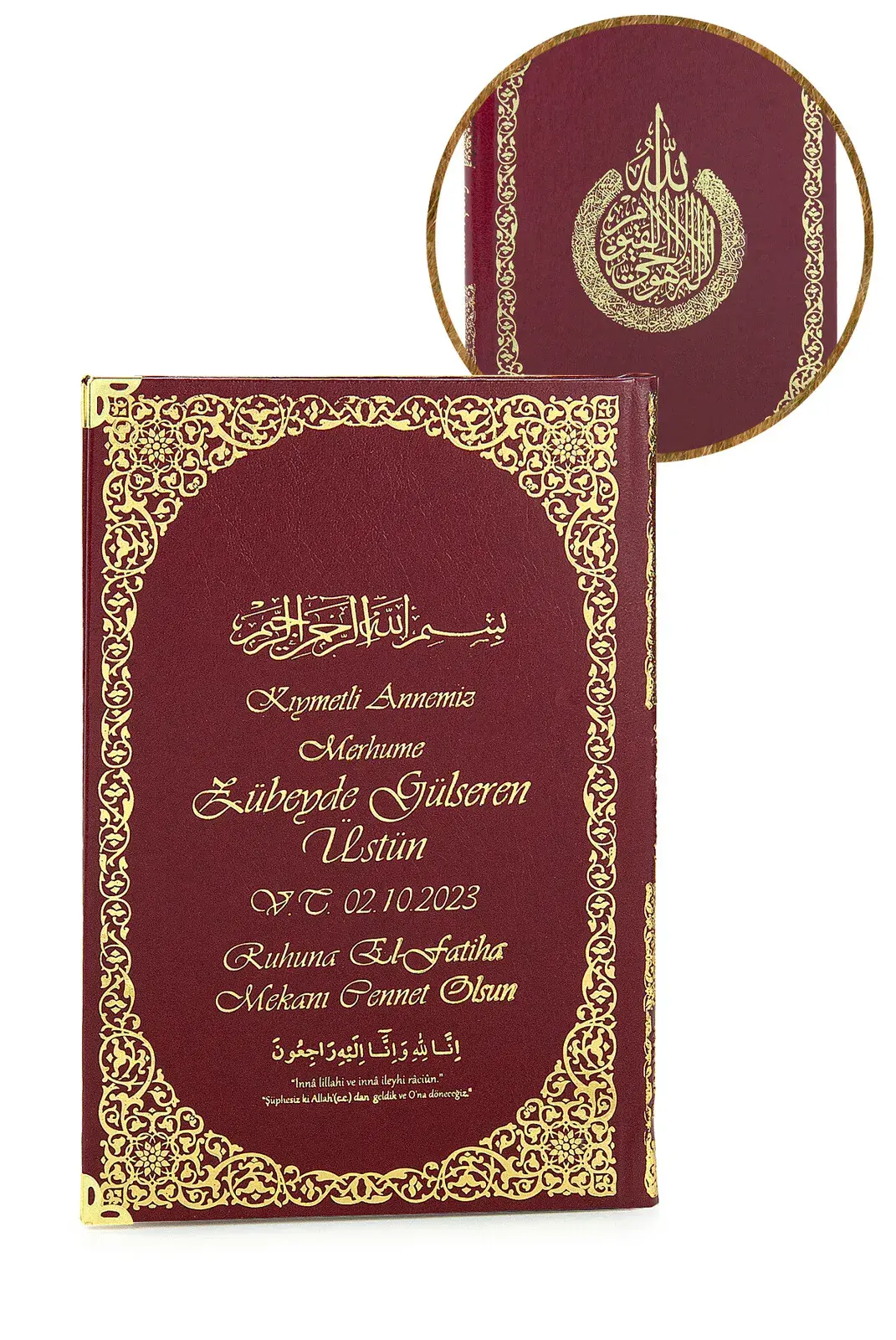 Gelince Haber VerCenaze mevlüt hediyelikleri arasında yer alan bu İsim baskılı Ayet-el kürsi desenli yaldızlı deri ciltli Yasin kitabı; aile ve dostlar için anlamlı bir hatıra niteliği taşır. Onları dualarla anmak isteyenler için özel olarak hazırlanmıştır. Mevlüt misafirlerine dağıtmak için ideal bir manevi hediyedir. En çok vefat mevlütlerinde tercih edilirken ayrıca farklı mevlütlerde de kullanılabilir.