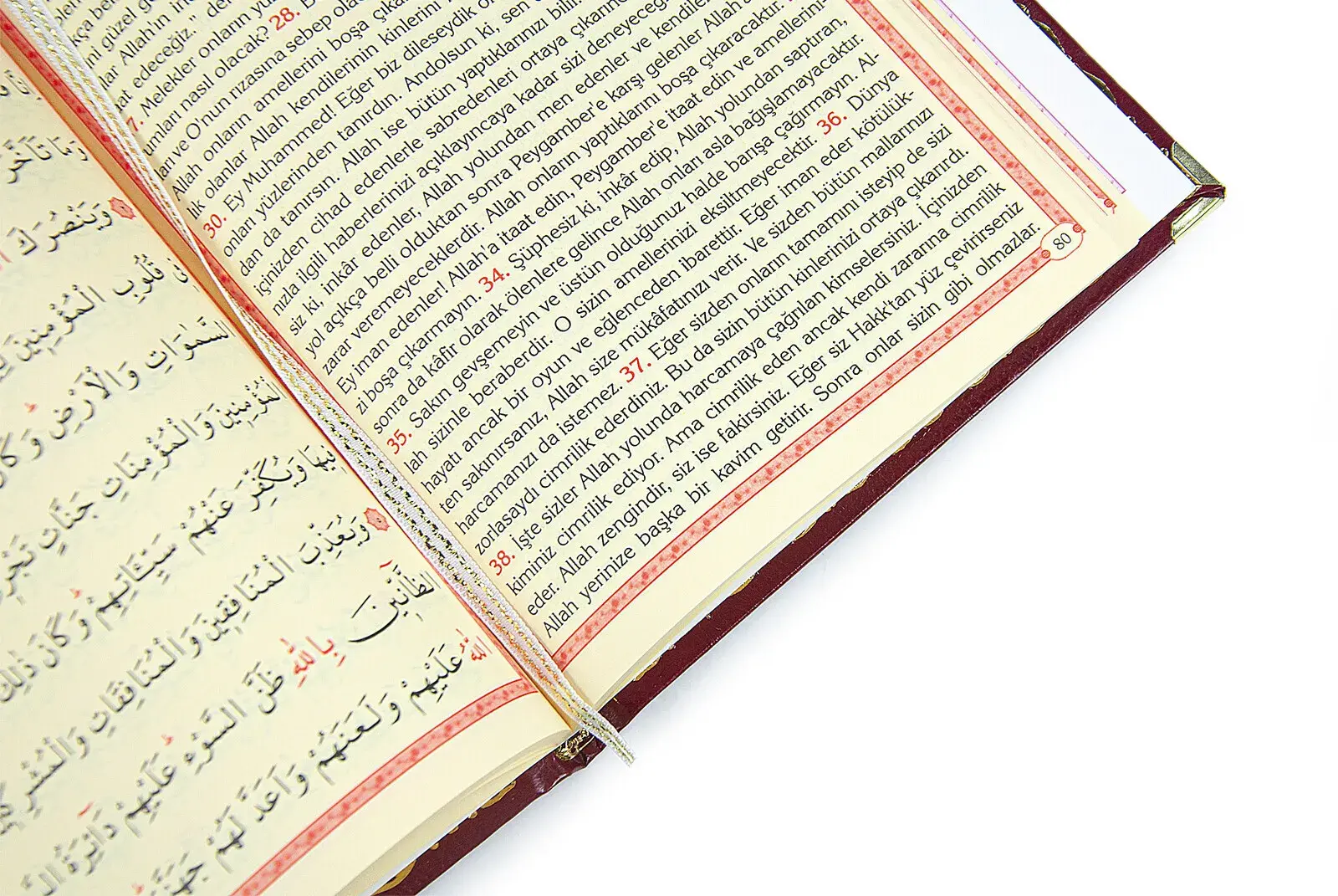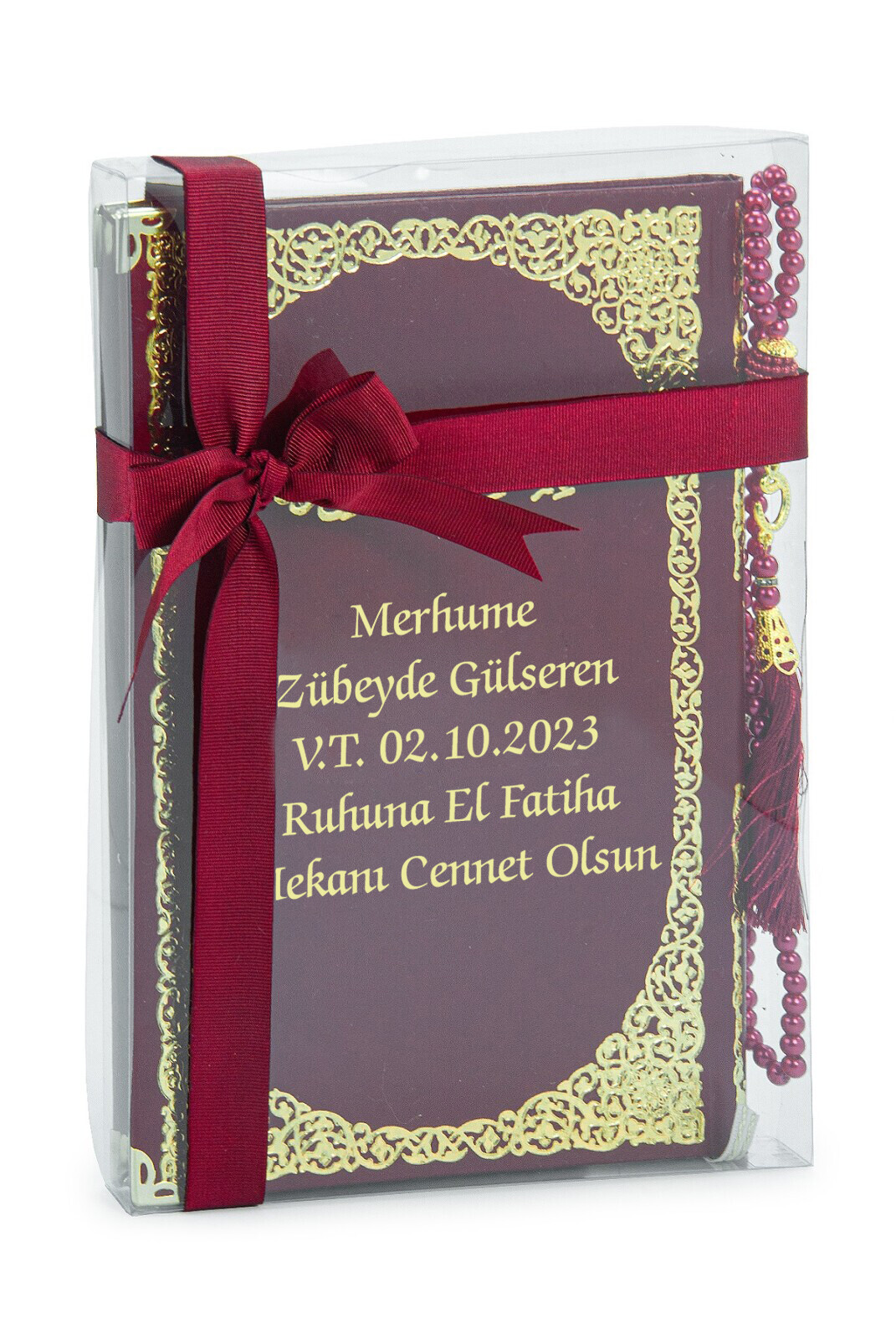 İsim Baskılı Yaldızlı Deri Ciltli Yasin Kitabı - Orta Boy - Şeffaf Kutulu - İnci Tesbihli - Kurdelalı - Kırmızı Renk