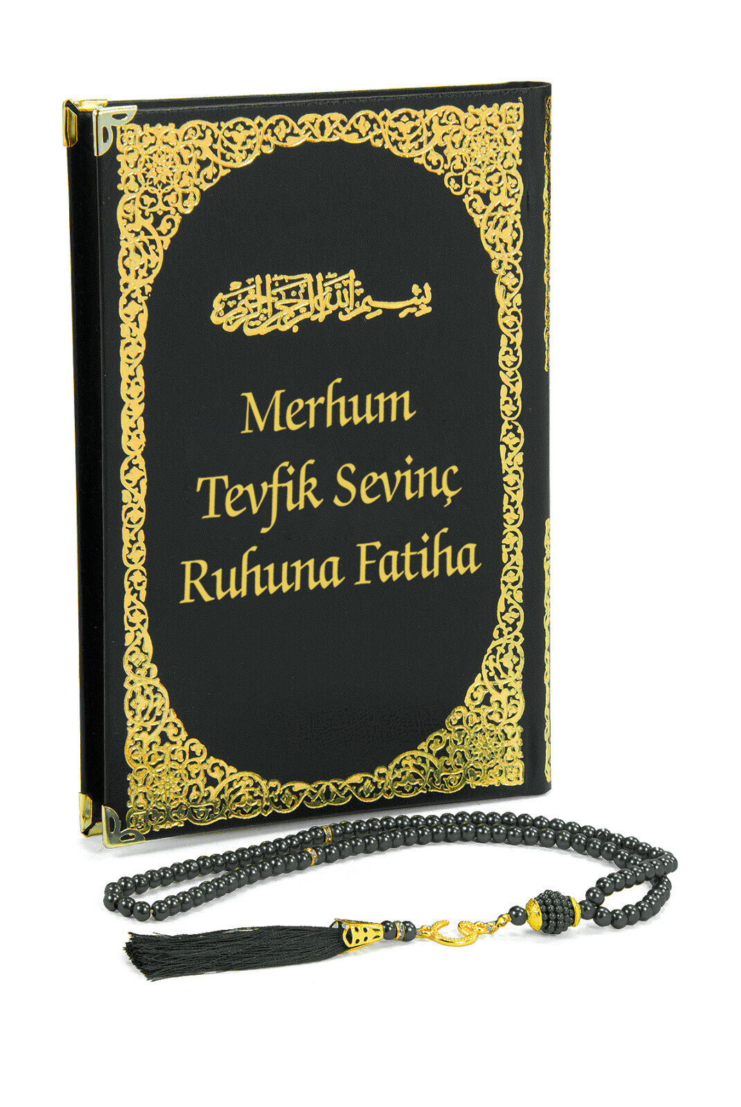 İsim Baskılı Yaldızlı Deri Ciltli Yasin Kitabı - Orta Boy - Şeffaf Kutulu - İnci Tesbihli - Kurdelalı - Siyah Renk
