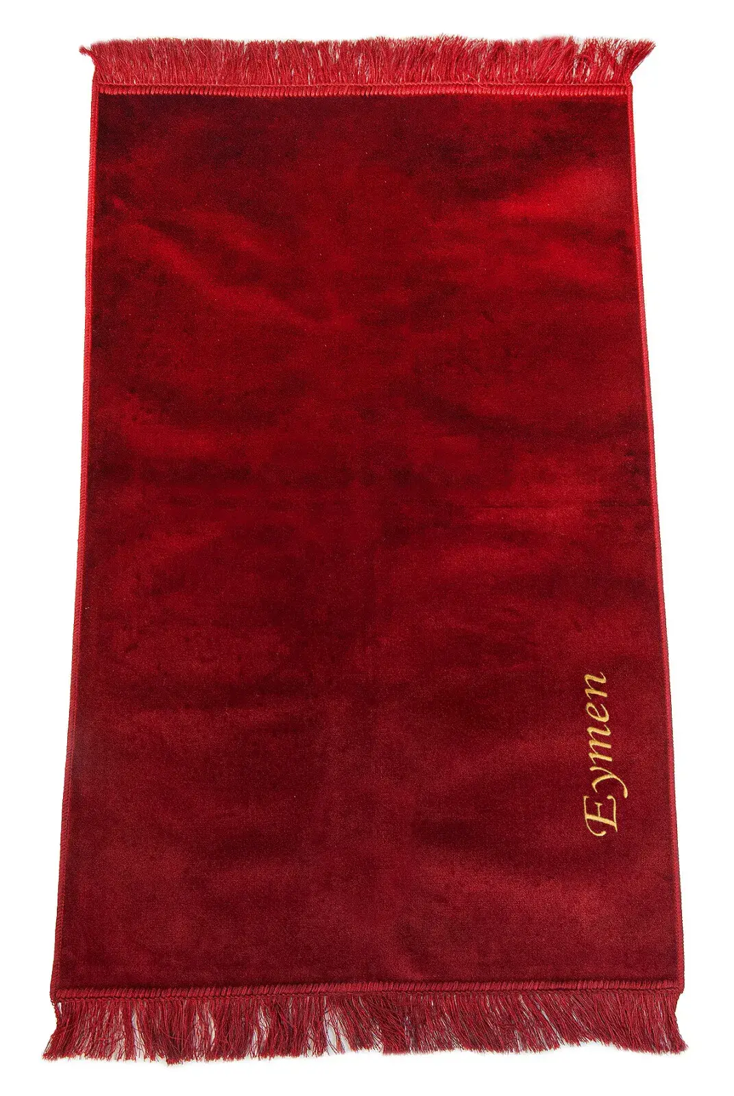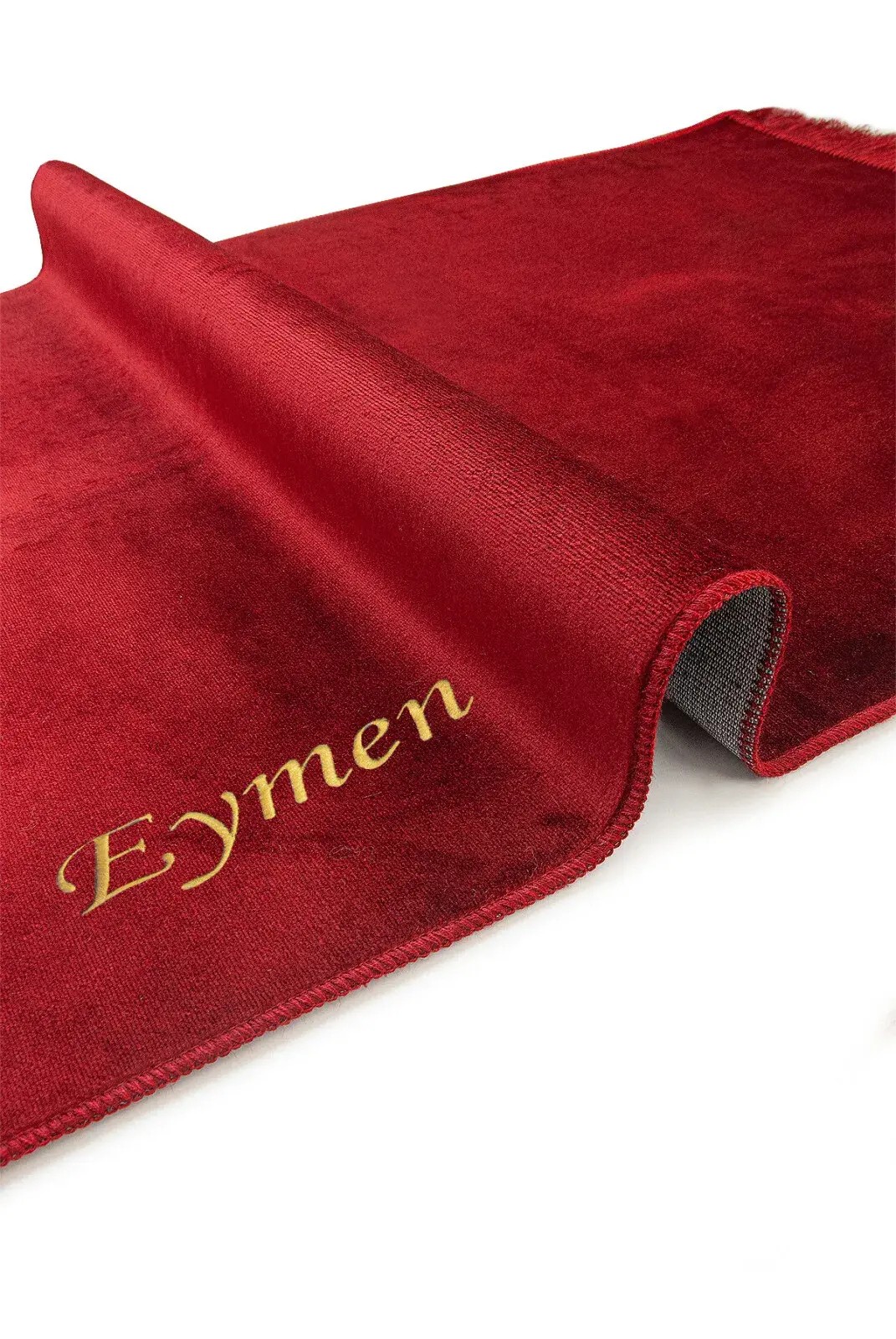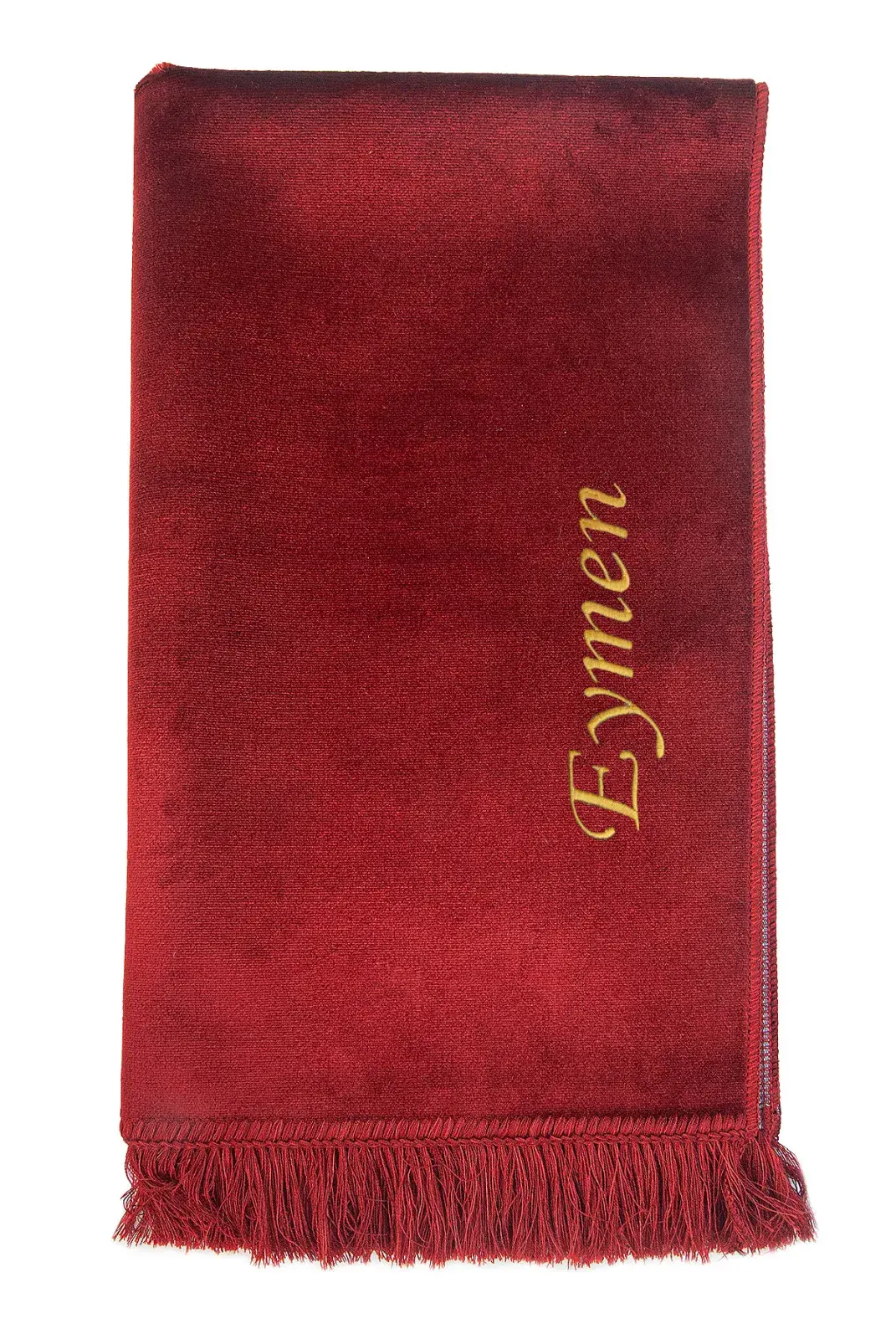 İsim Nakışlı Desensiz Kadife Seccade Bordo