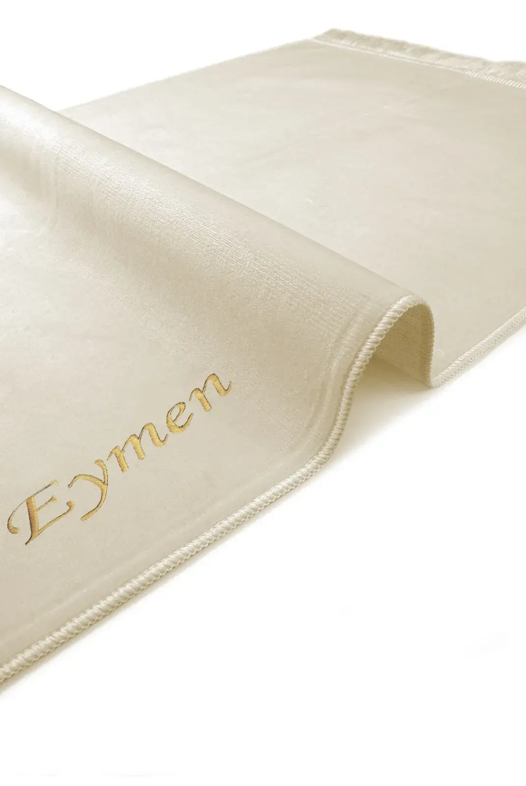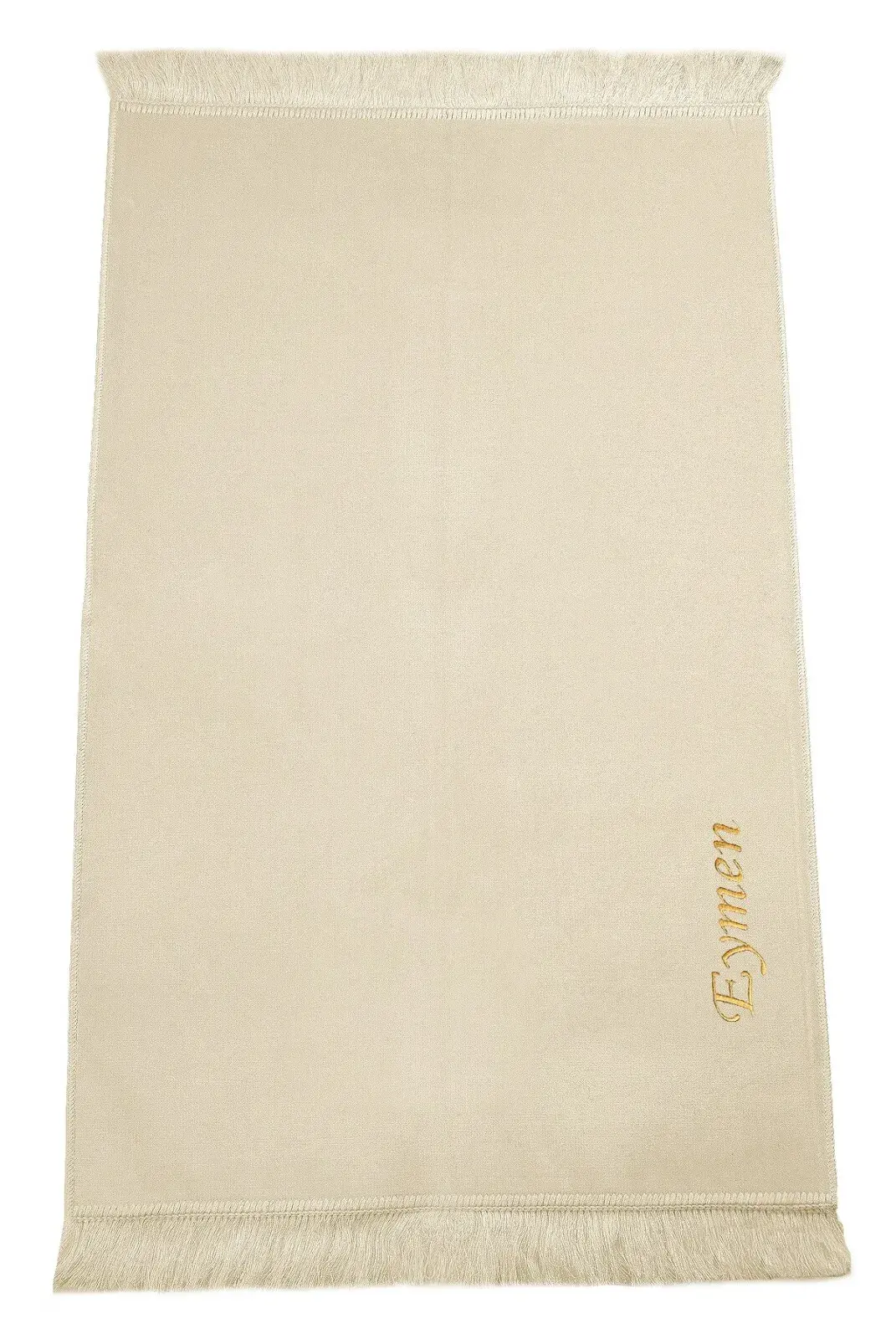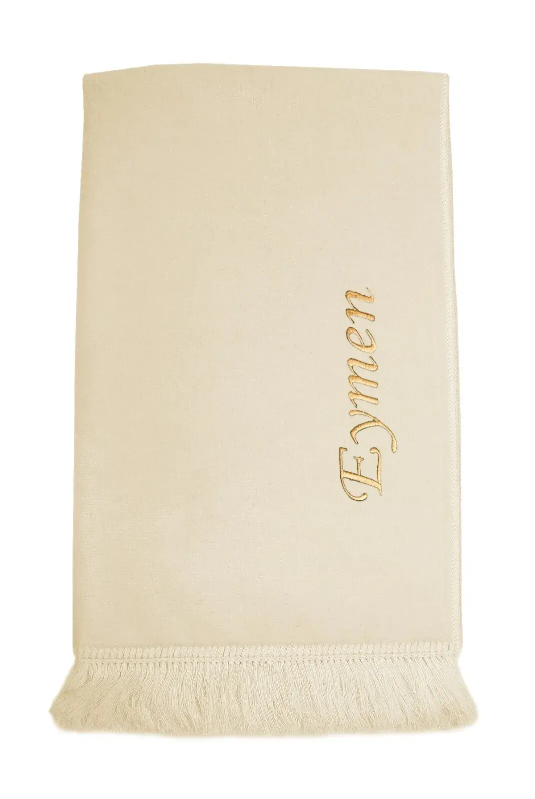 İsim Nakışlı Desensiz Kadife Seccade Krem