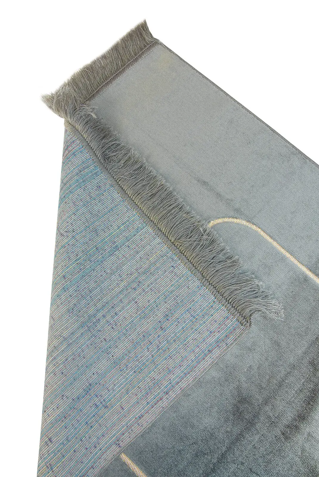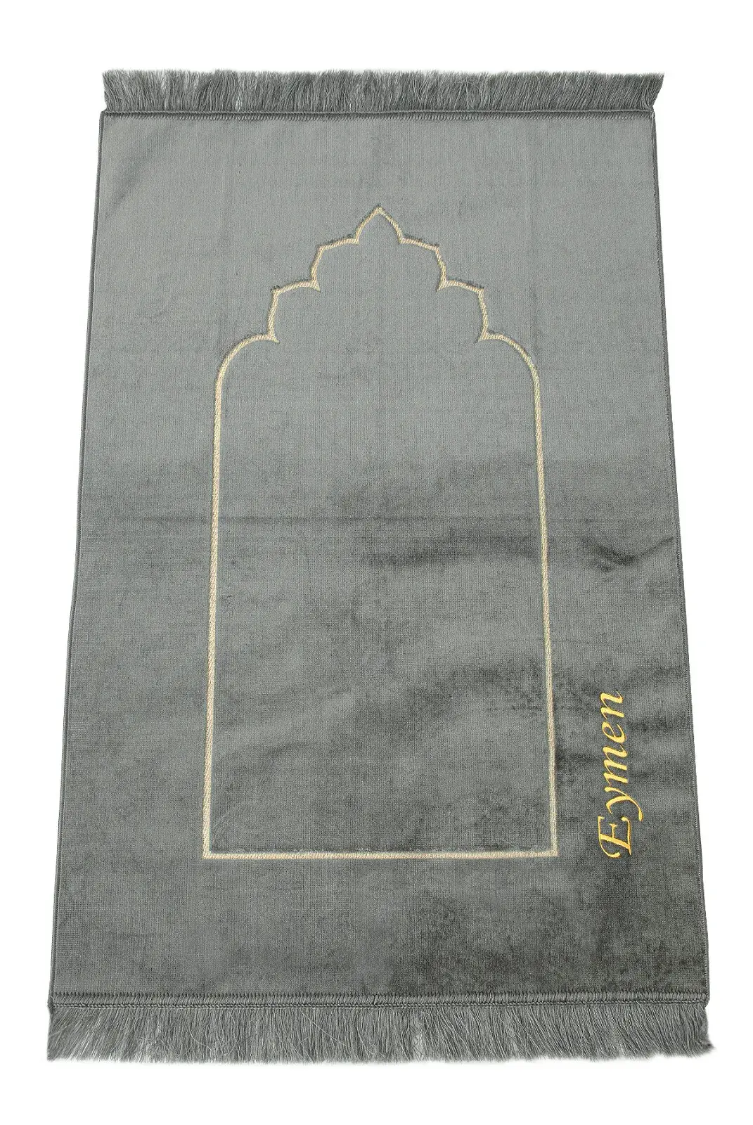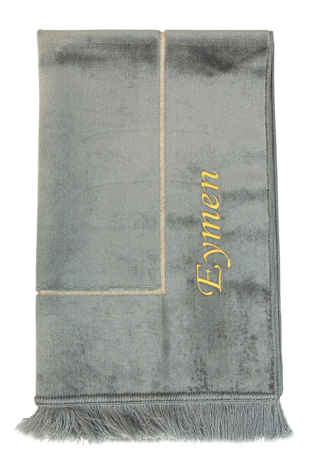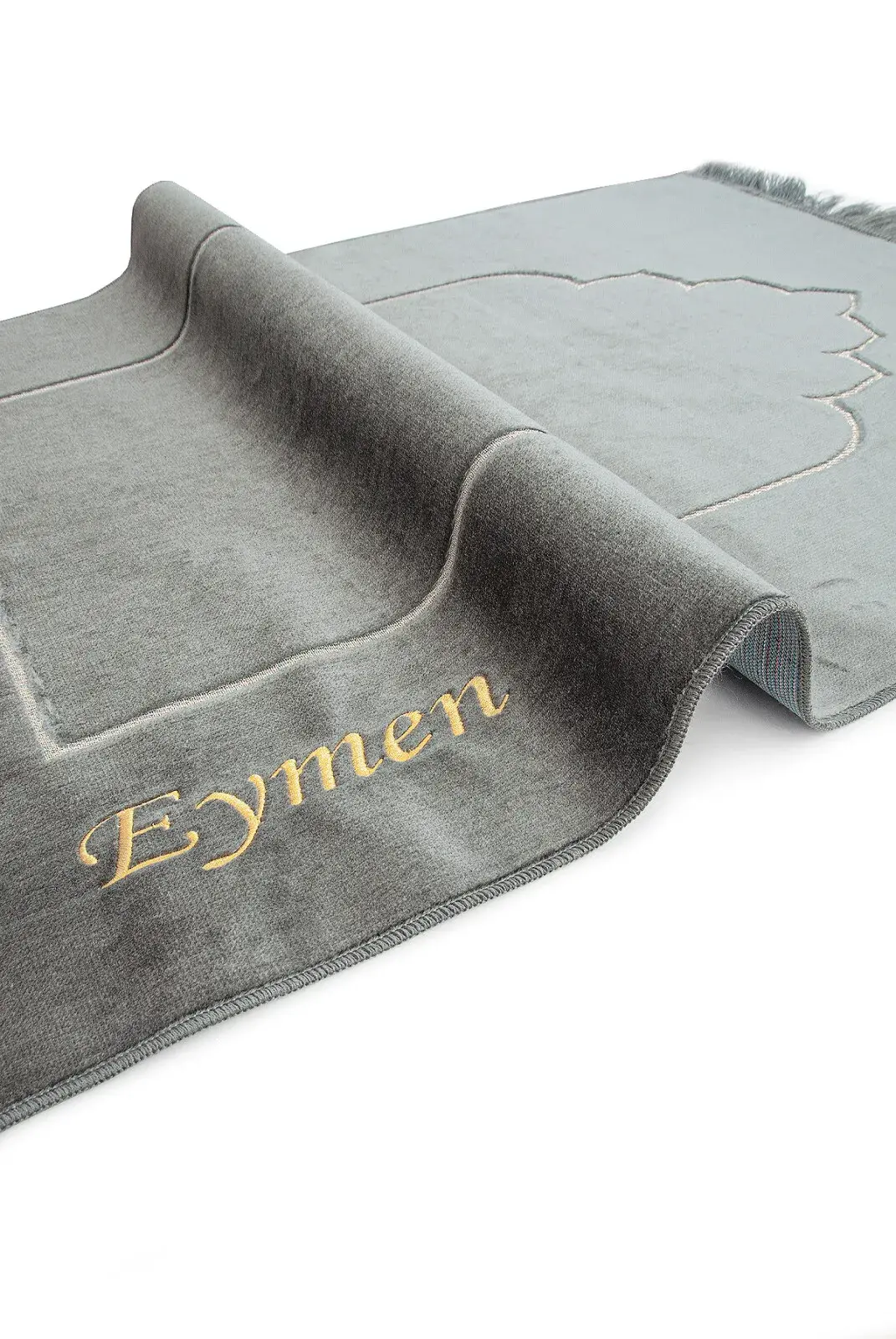 İsim Nakışlı Mihrap Desenli Kadife Seccade Gri