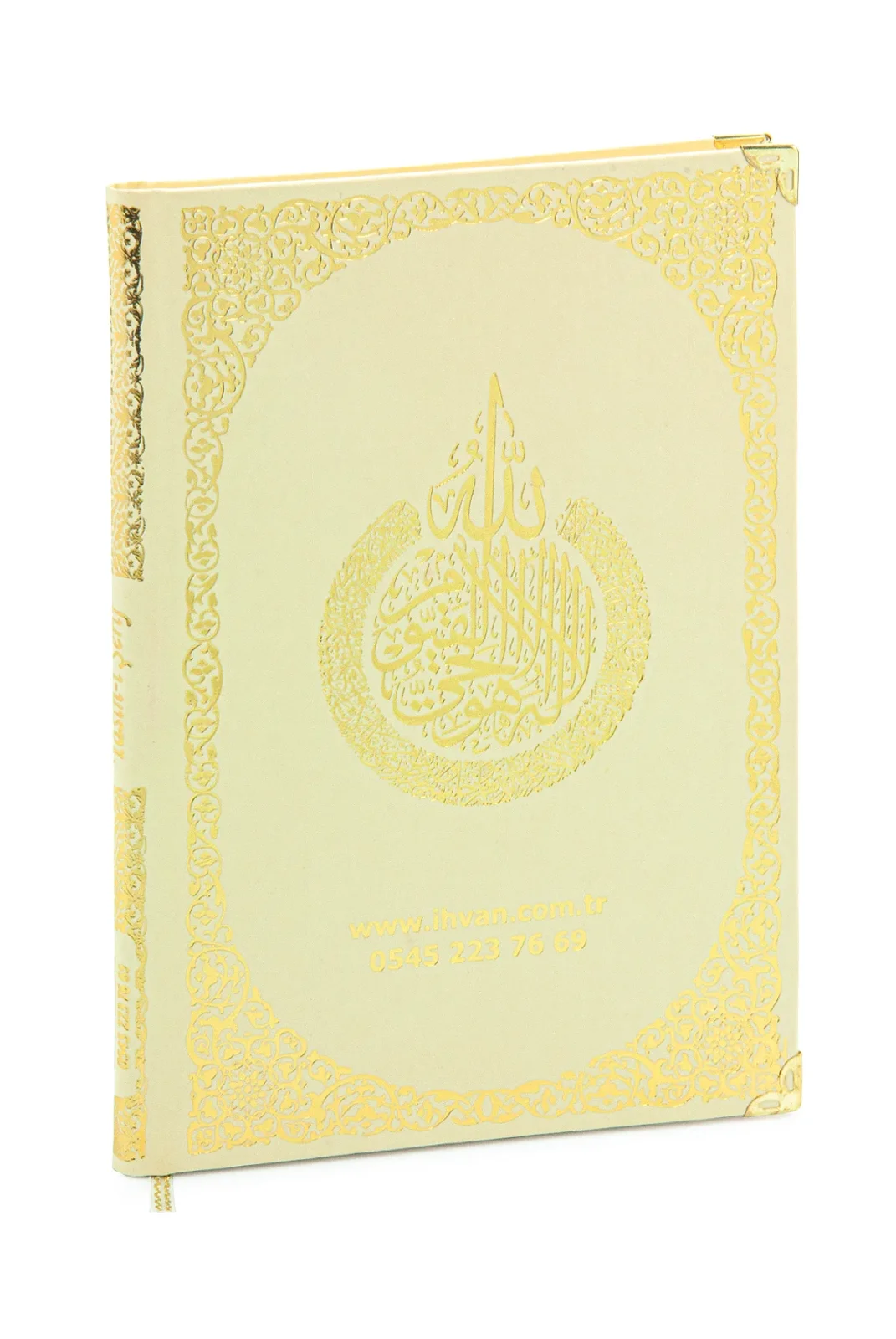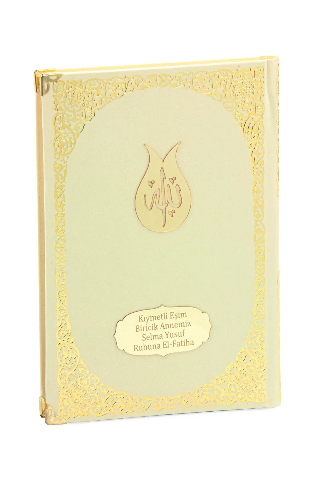 İsme Özel Yaldızlı Deri Ciltli Yasin Kitabı Ayetel Kürsi Desenli Mevlüt Hediyesi Orta Boy 176 Sayfa - Krem