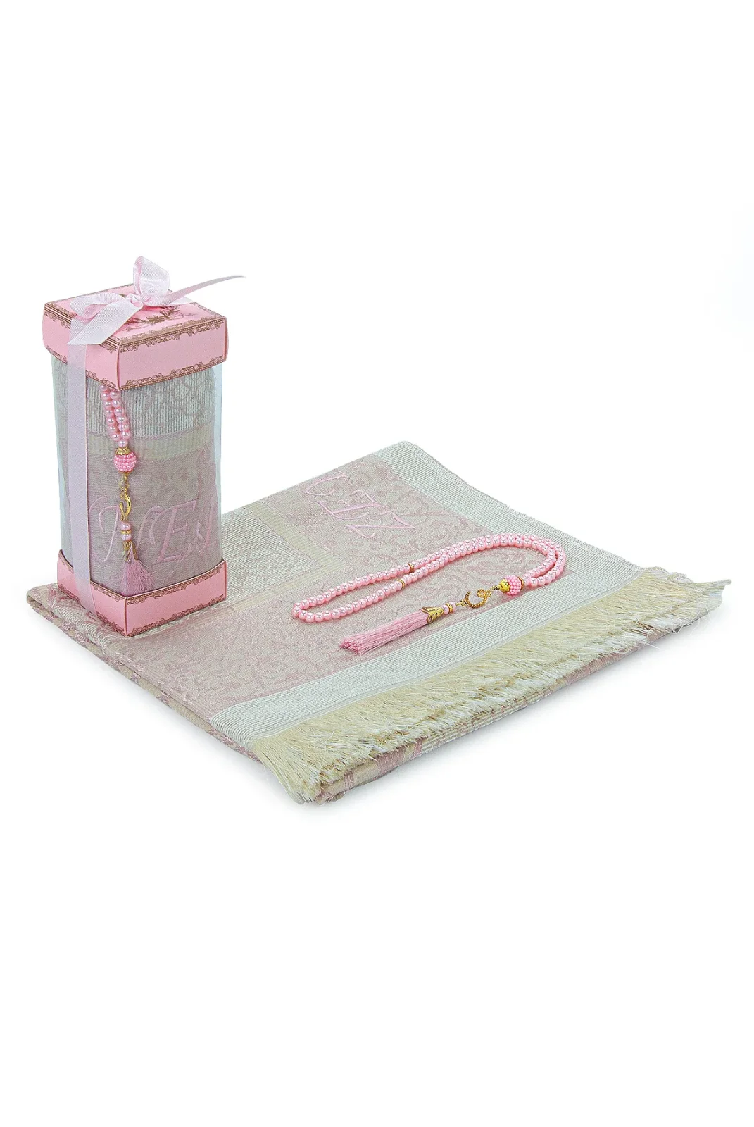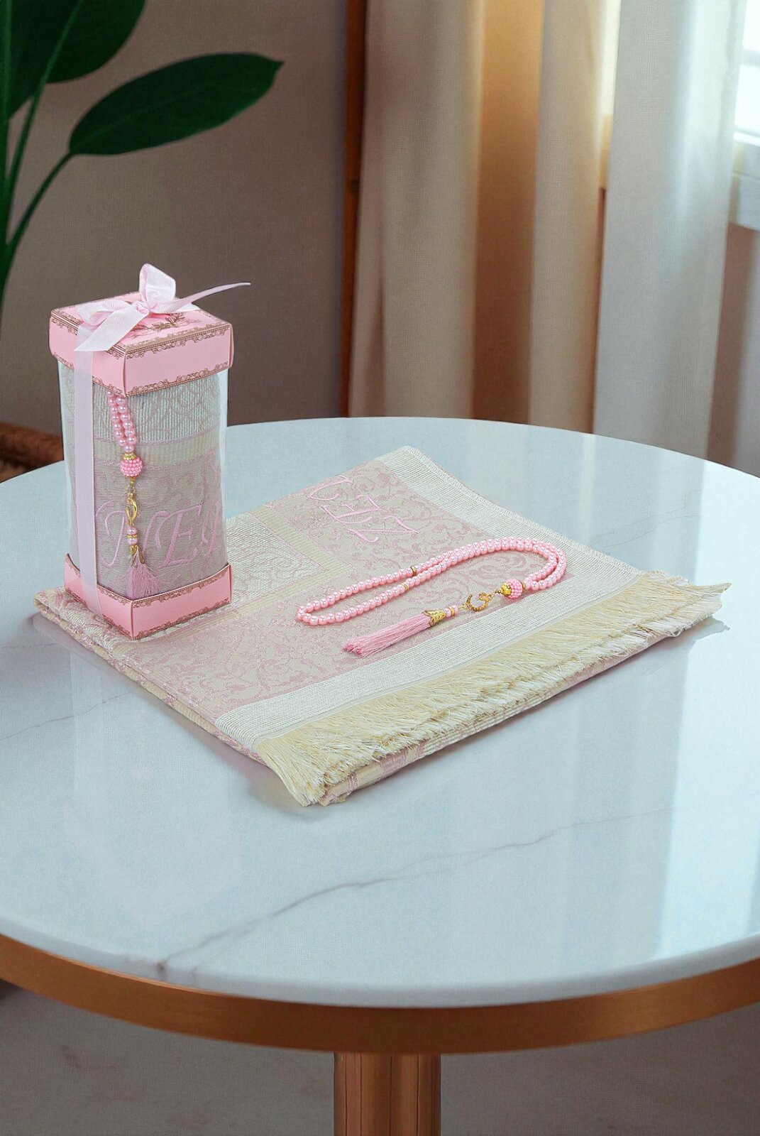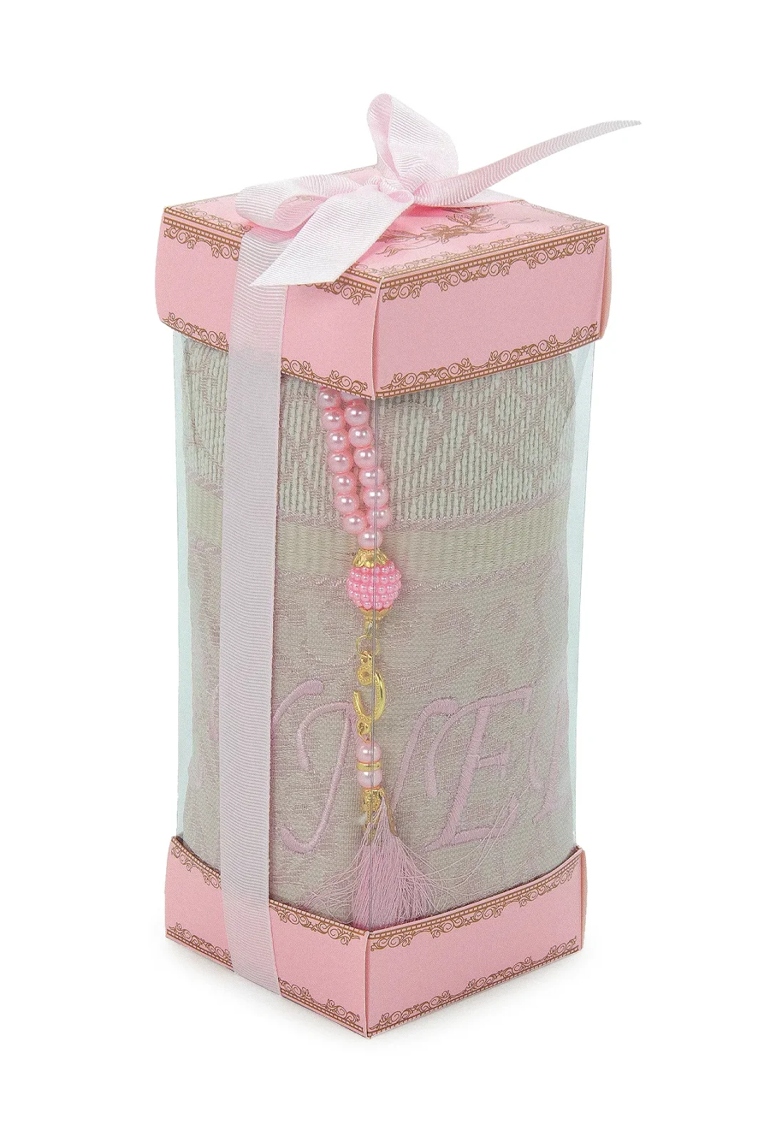 İsme Özel Çeyizlik Seccade Seti Hediyelik Özel Kutulu Pembe