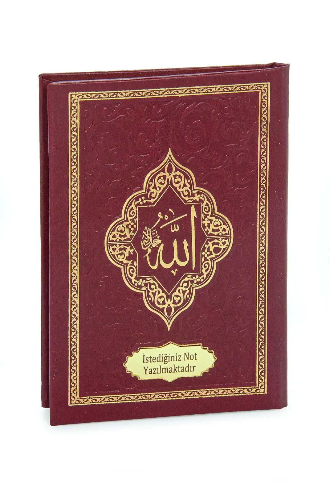 İsme Özel Kabartmalı Yaldızlı Deri Ciltli Yasini Şerif Kitabı - Çanta Boy – 128 Sayfa - Kırmızı