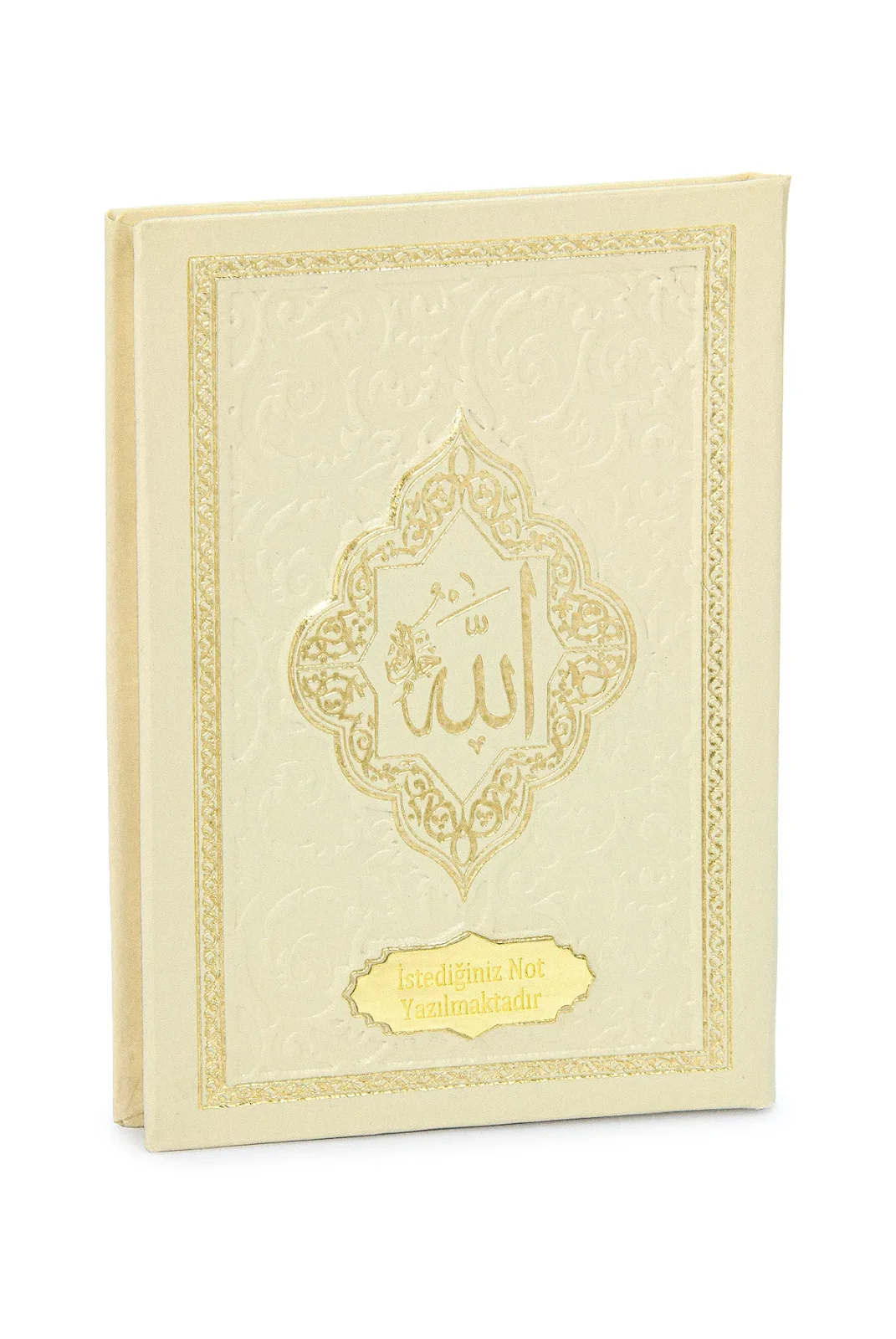 İsme Özel Kabartmalı Yaldızlı Deri Ciltli Yasini Şerif Kitabı - Çanta Boy – 128 Sayfa - Krem