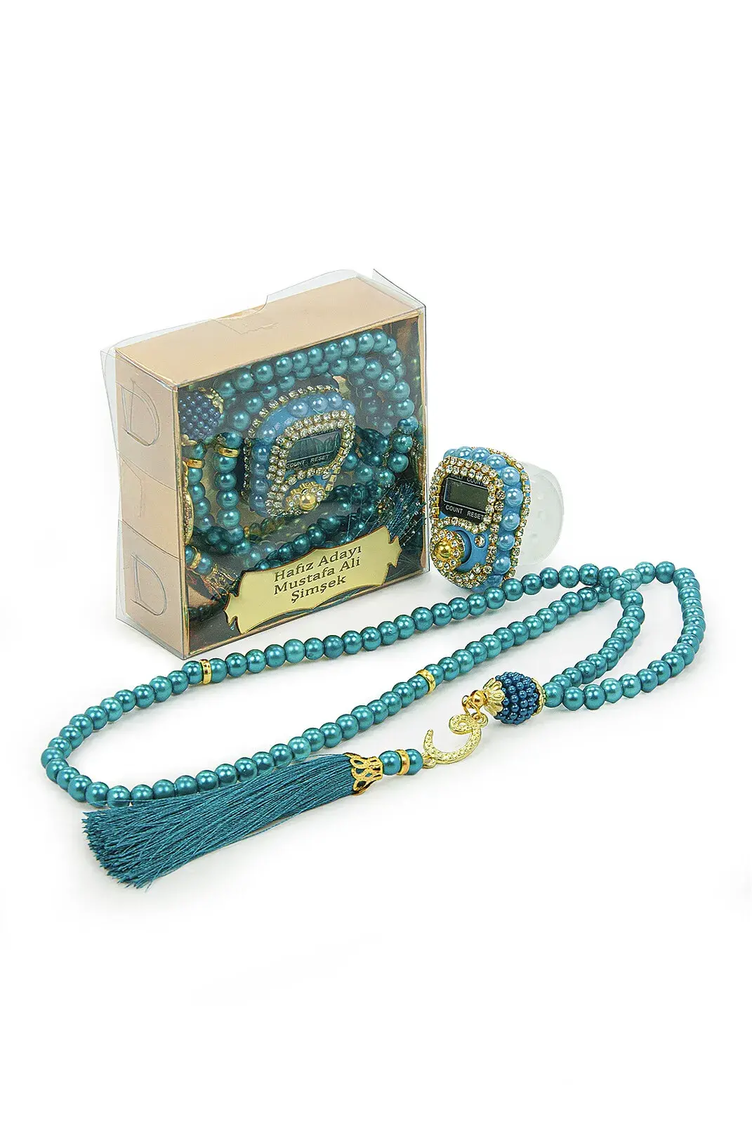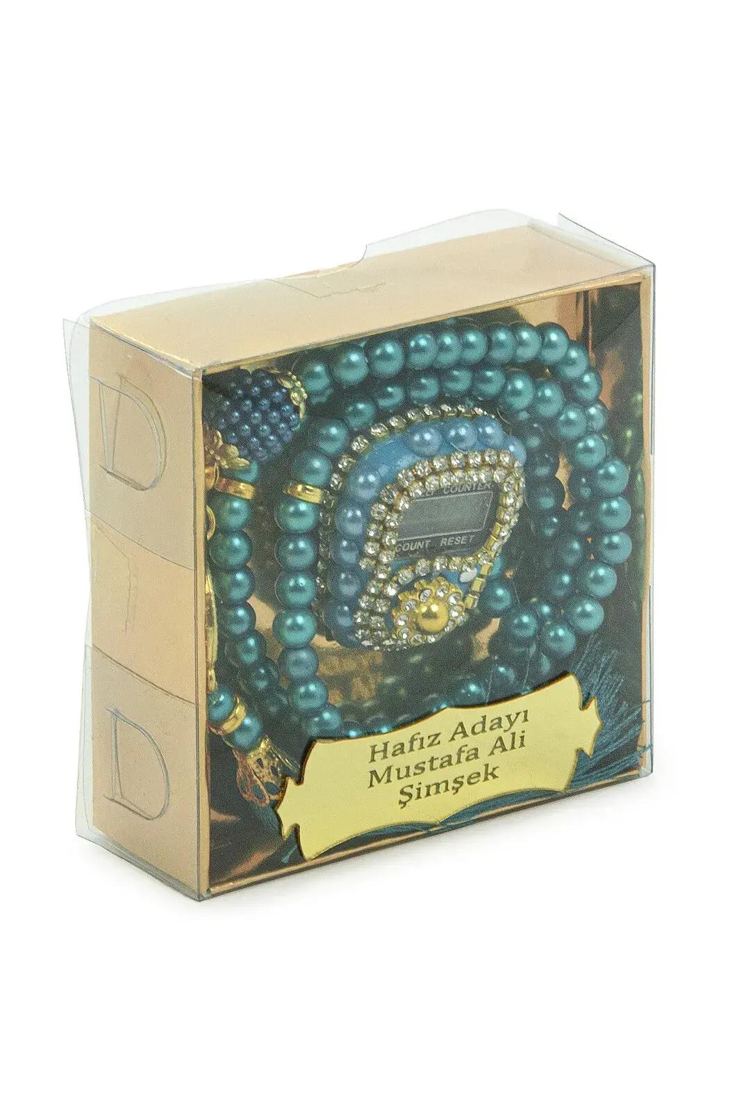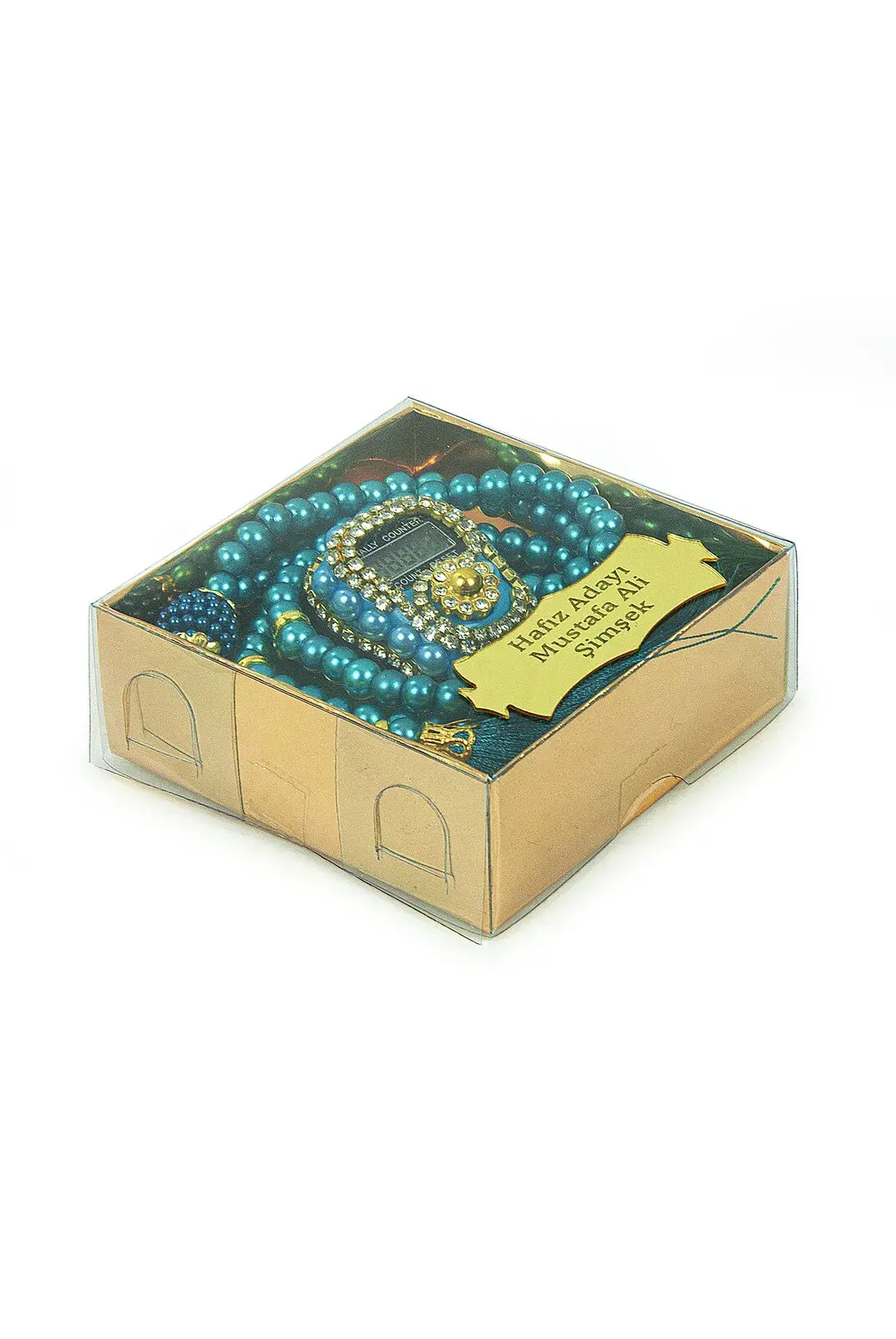 İsme Özel Kutulu İnci Tesbihli Taşlı Zikirmatik Mevlüt Hediyesi Petrol